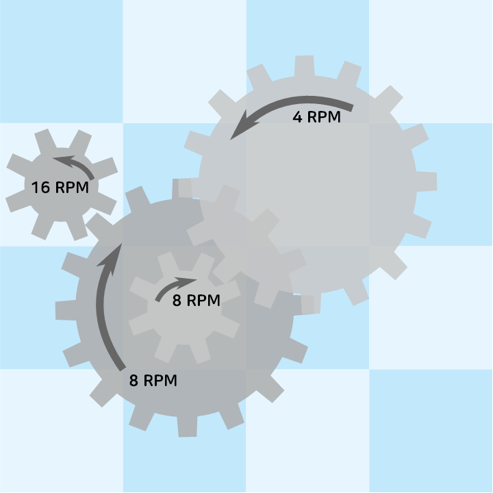 회전 속력과 스트레스 이외에 동력 시스템을 구성할 때 고려해야 할 점에는 회전축의 방향(x,y,z), 회전 방향 (시계, 반시계) 등이 있습니다. 이 점을 고려하지 않으면 불필요한 장치를 더 설치해야 하거나, 컨베이어 벨트나 피스톤의 방향이 반대로 움직이는 등의 참사가 벌어질 수 있습니다.