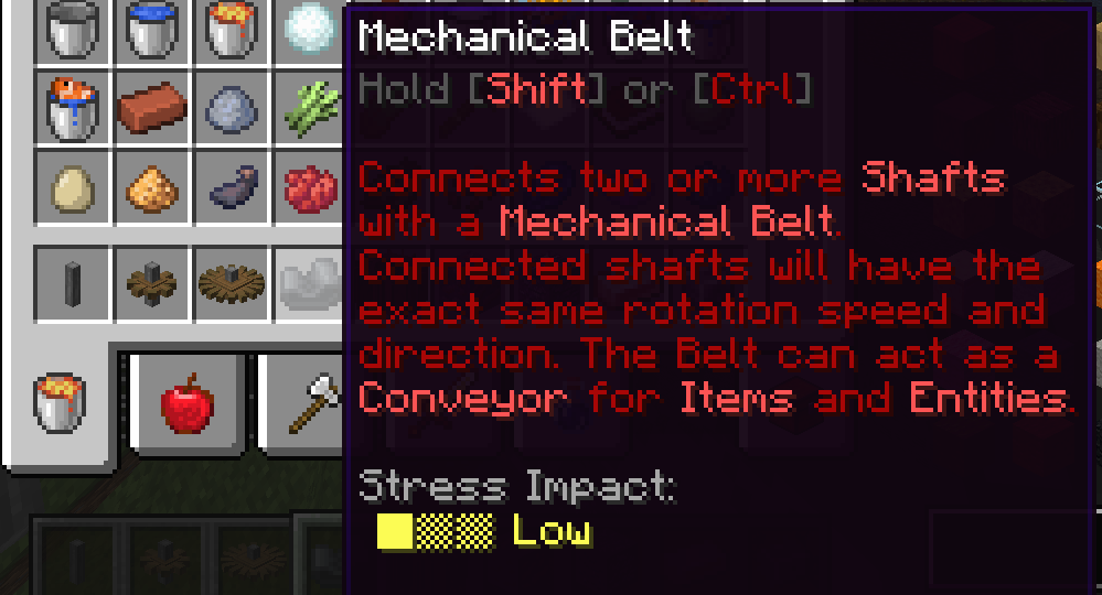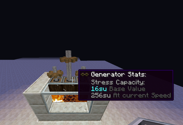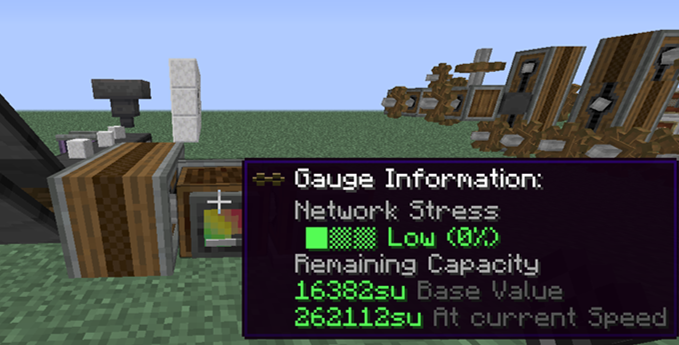 동력을 소모하는 장치들은 각자 스트레스를 주는 정도가 정해져있습니다. 이는 Stress Impact라고 하며, 회전 속력과 무관한 어떤 값입니다. 게임 내부에서는 Small, Low 등의 단어로 표현되지만, 실제로는 특정 숫자 값을 가집니다. 각 장치가 주는 Stress는 (Stress Impact) × (회전 속력)으로 표현할 수 있습니다. 마찬가지로, 회전 속력이 변할 수 있는 동력원 (풍차, 물레방아 등)의 경우, 스트레스 용량은 회전 속력에 비례하여 증가합니다.