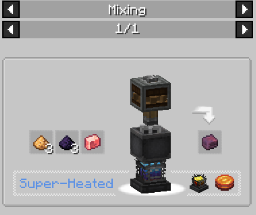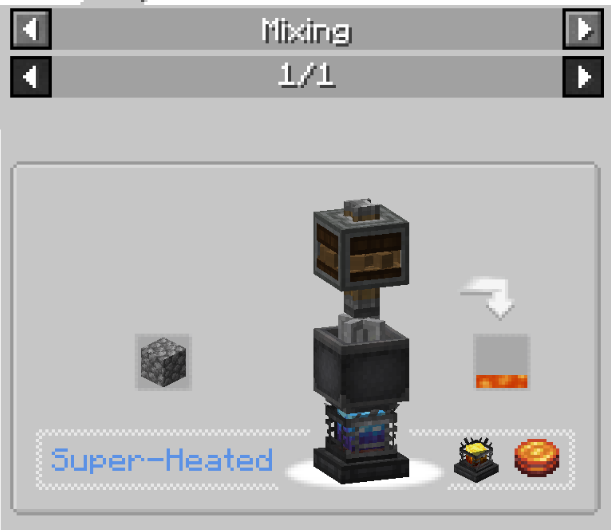 Super Heating 상태에서는 조약돌을 용암으로 바꾸거나, Chromatic Compound를 만들 수 있습니다. 용암을 만드는 공정의 경우 Blaze Cake의 조합에 용암이 들어가기에 효율적인 방법인지는 잘 모르겠습니다.