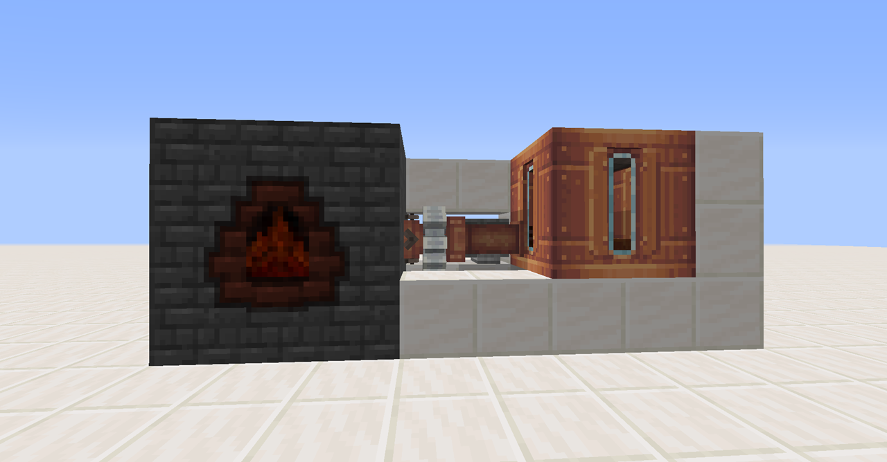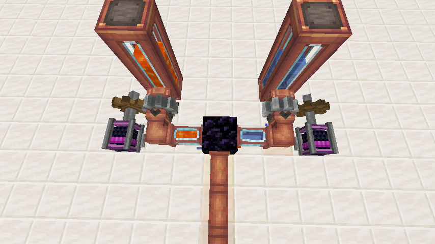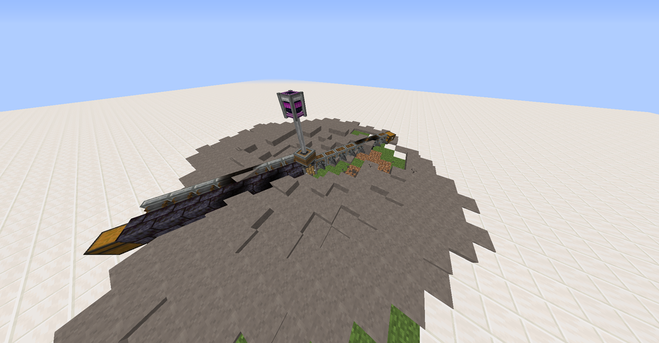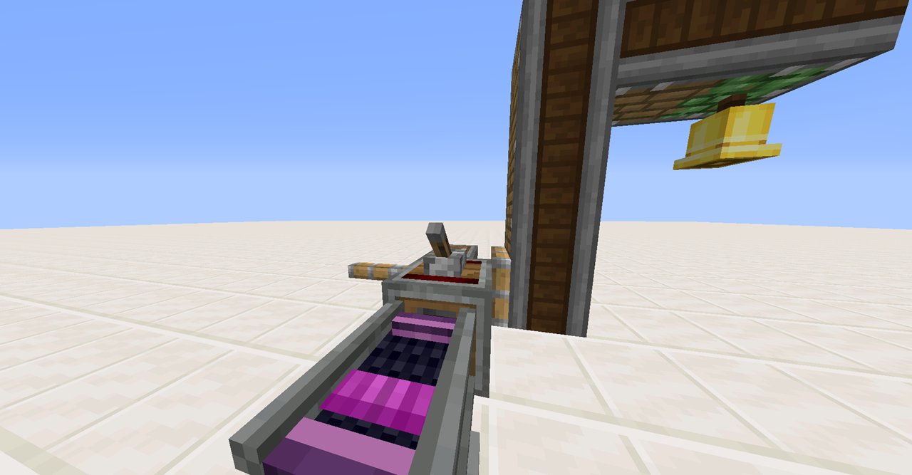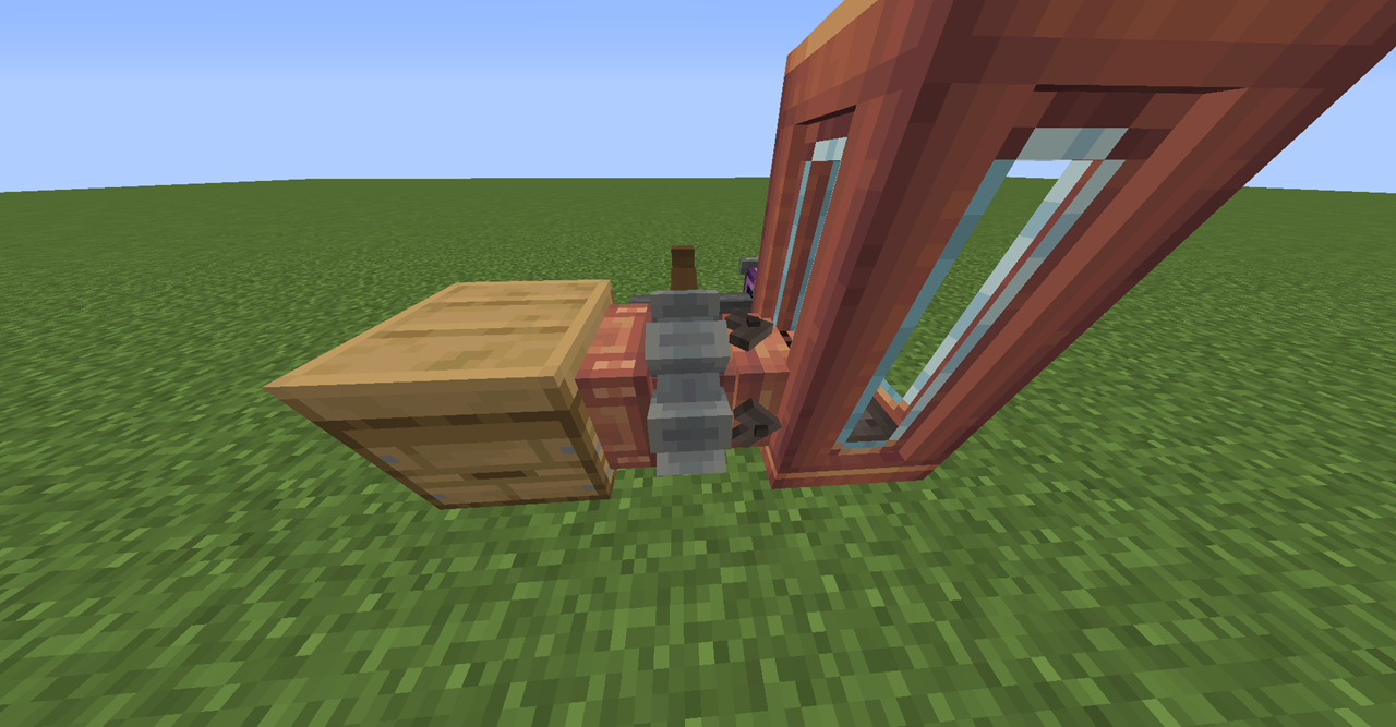 레드스톤 신호가 공급되면 이동을 멈추는데, 이 때 이동중이던 Carriage 측면의 축이 보이는 면에 연결된 Gantry Shaft에 연결된 또 다른 Carriage가 이동하게 됩니다.