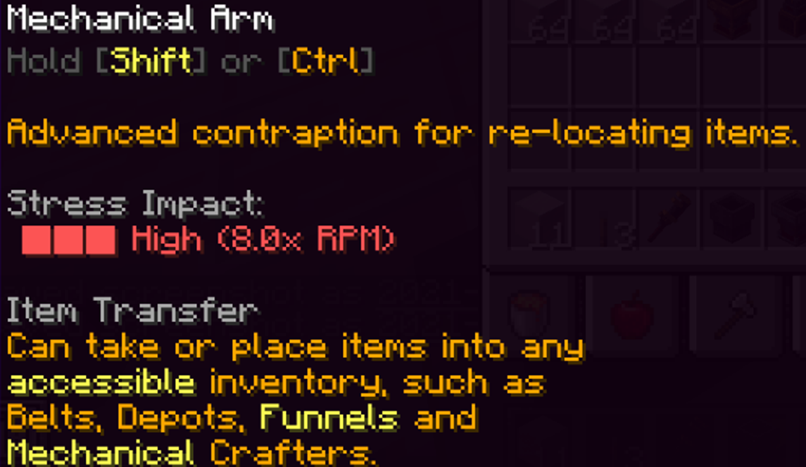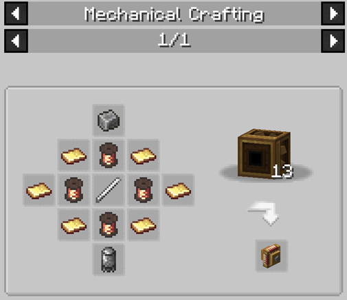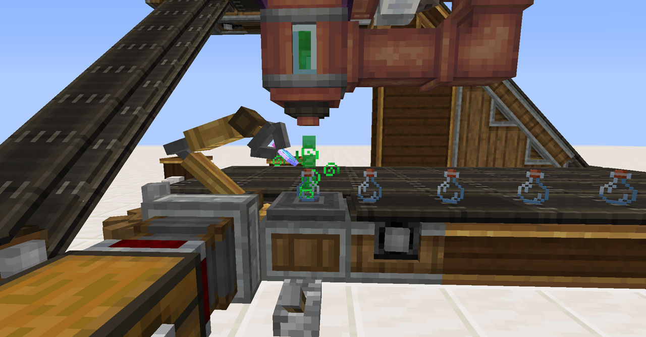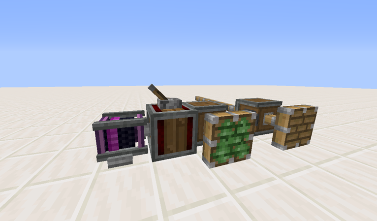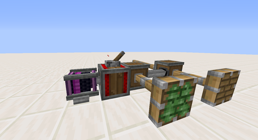 Mechanical Saw는 톱, Mechanical Drill은 드릴 역할을 하며, Deployer은 움직이는 구조물에 연결된 상자 (혹은 저장공간)과 연결되어서 똑같은 역할을 수행합니다. 또한, 톱과 드릴은 엔티티에 피해를 주는 효과가 이어져서 몹 타워 등에 응용될 수 있습니다.