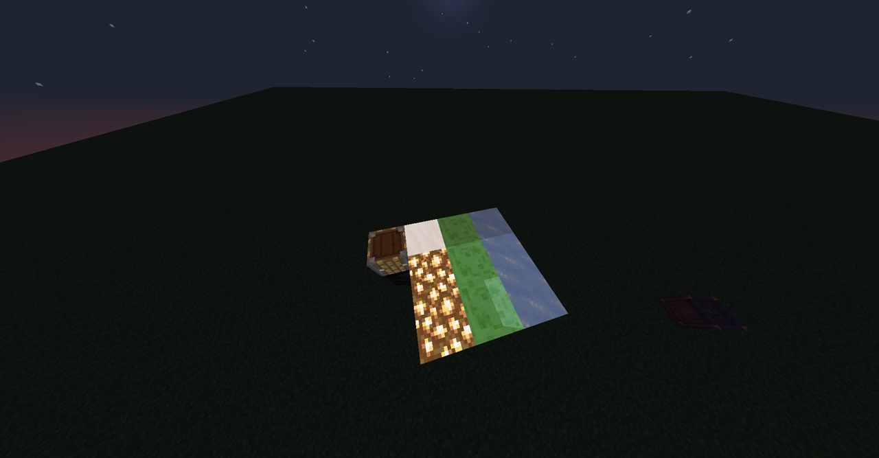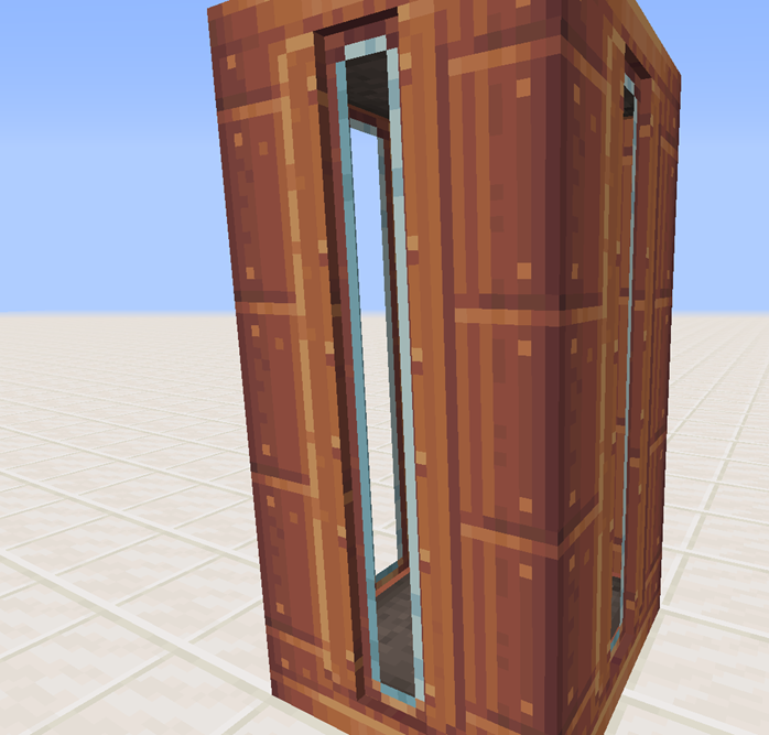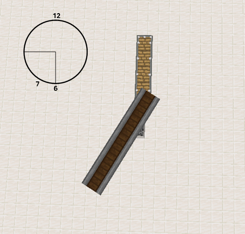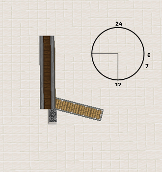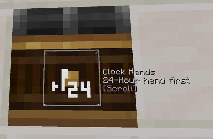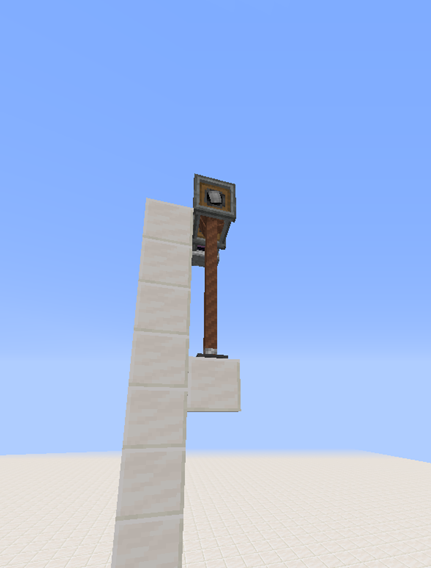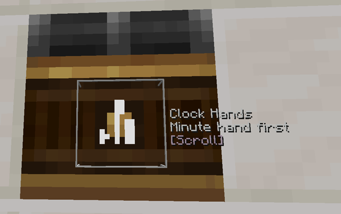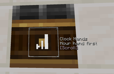 아래와 같이 버튼 있는 쪽이 기준이 됩니다. 참고로 버튼이 있는 방향이 12시간 체계의 6시 방향이라 보시면 됩니다. 이 방향은 임의로 바꿀 수는 없습니다. 스크린샷은 마인크래프트 상의 'day' (/time set 1000)로 오전 7시 정도입니다. 뻐꾸기 시계와 같은 방향을 가리킵니다.