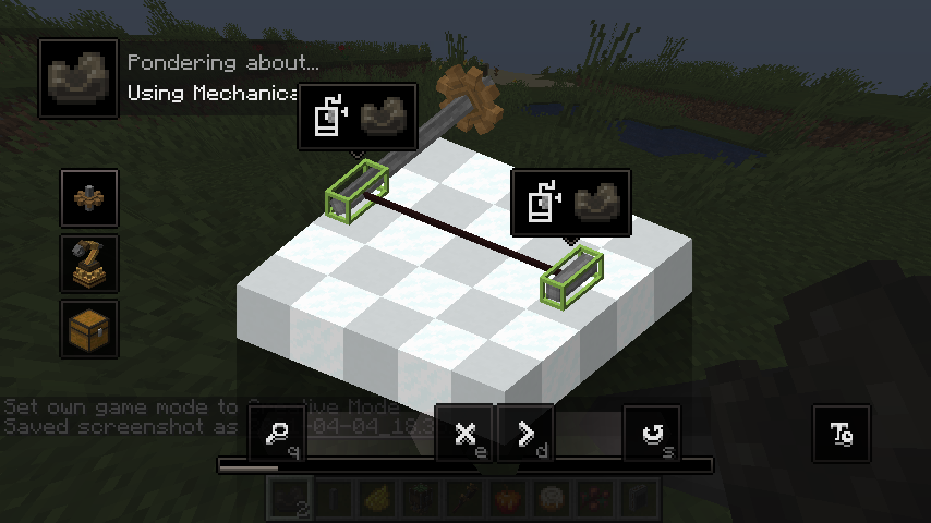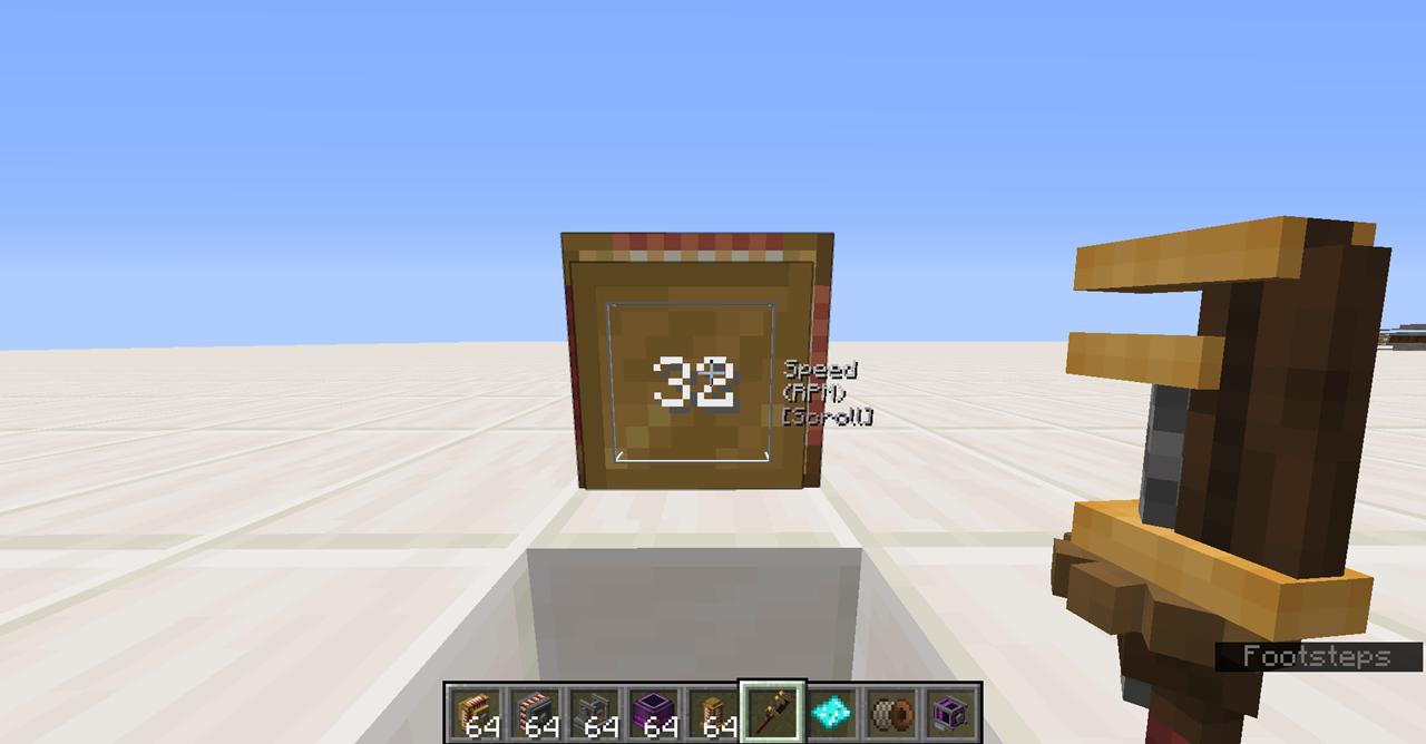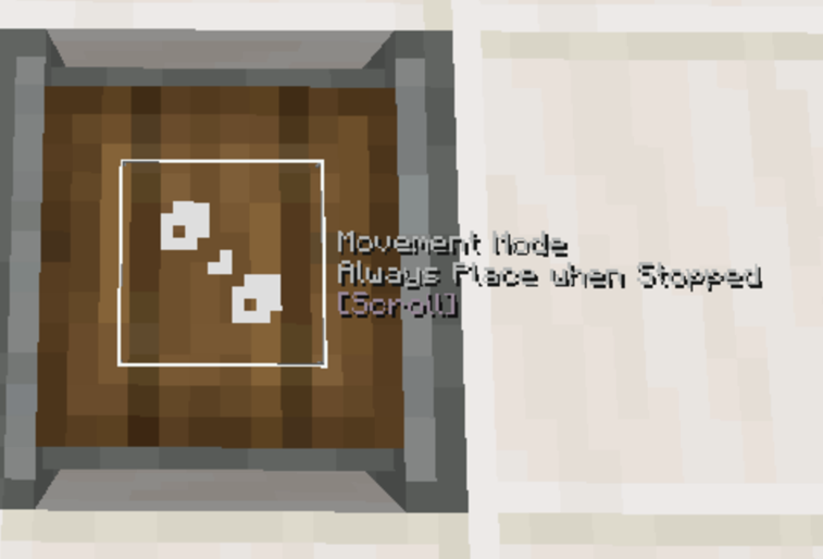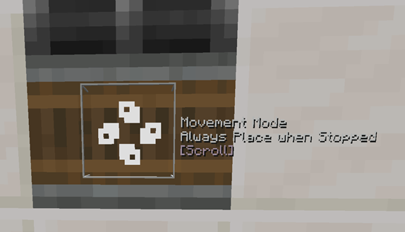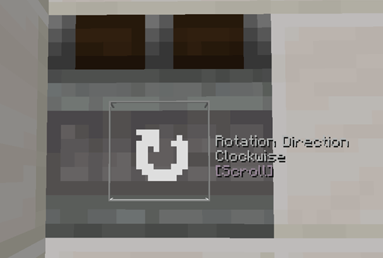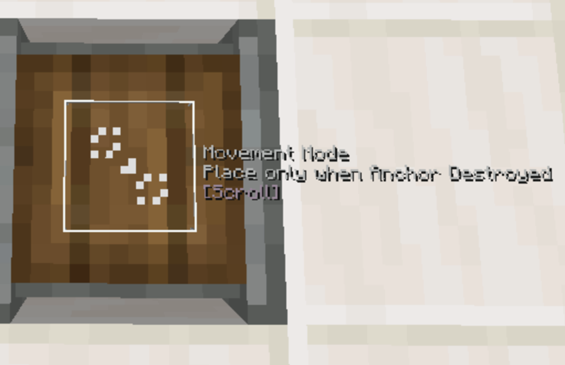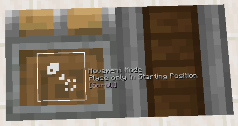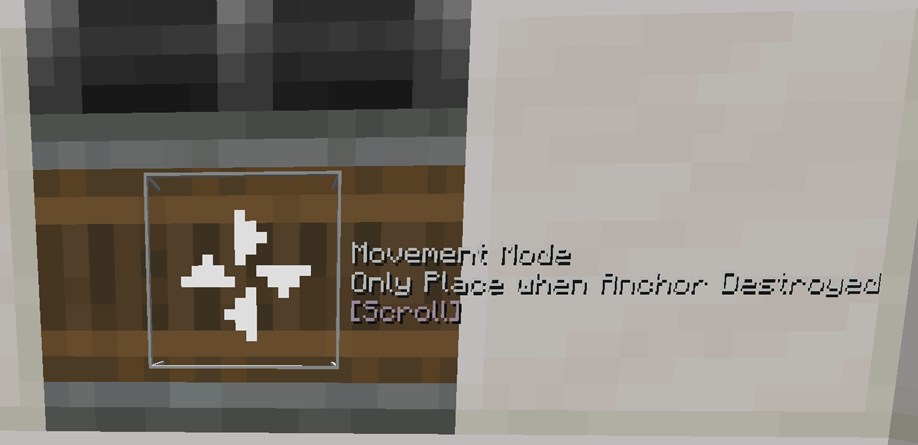 렌치를 들고 Mechanical Piston 블럭에 대면 현재 설정을 볼 수 있으며, 이 상태에서 (흰 색 상자 안에 초점을 맞춘 뒤) 스크롤을 해서 설정을 바꿀 수 있습니다.