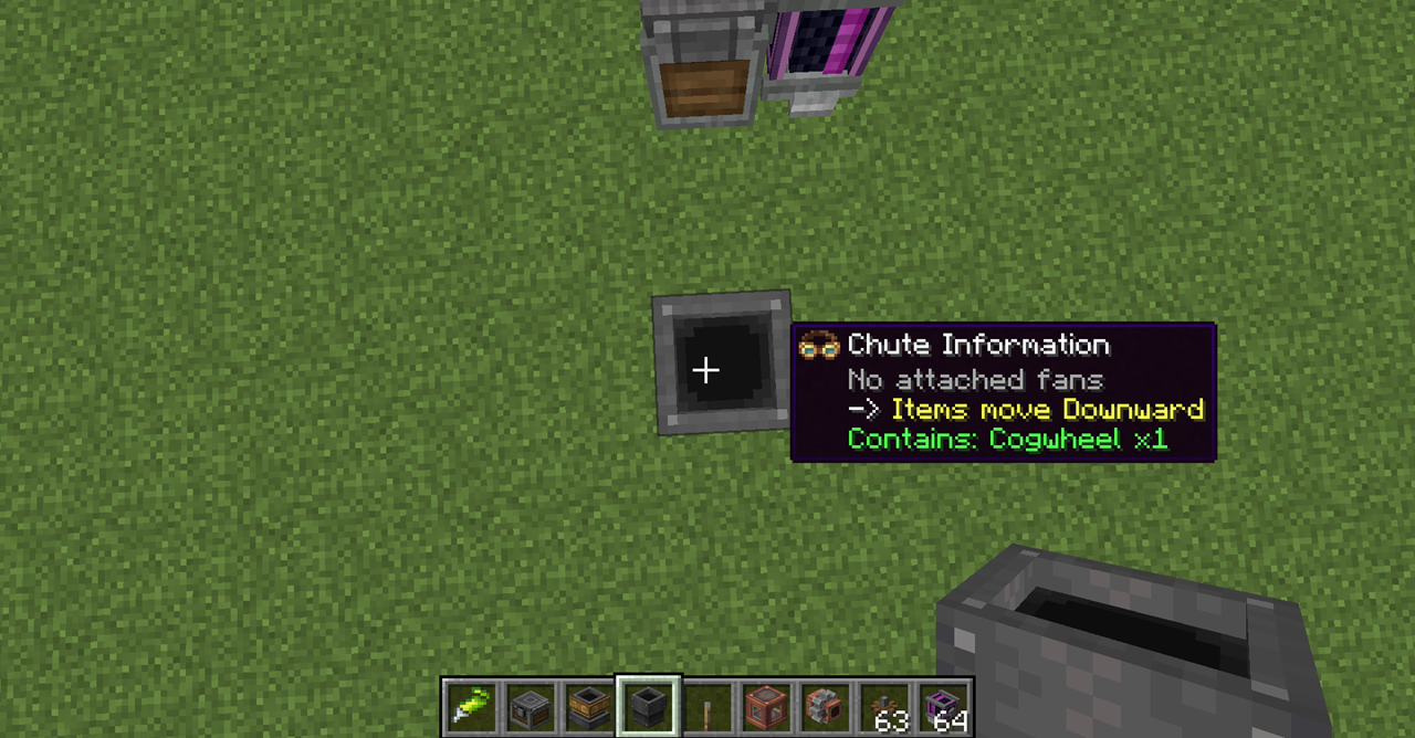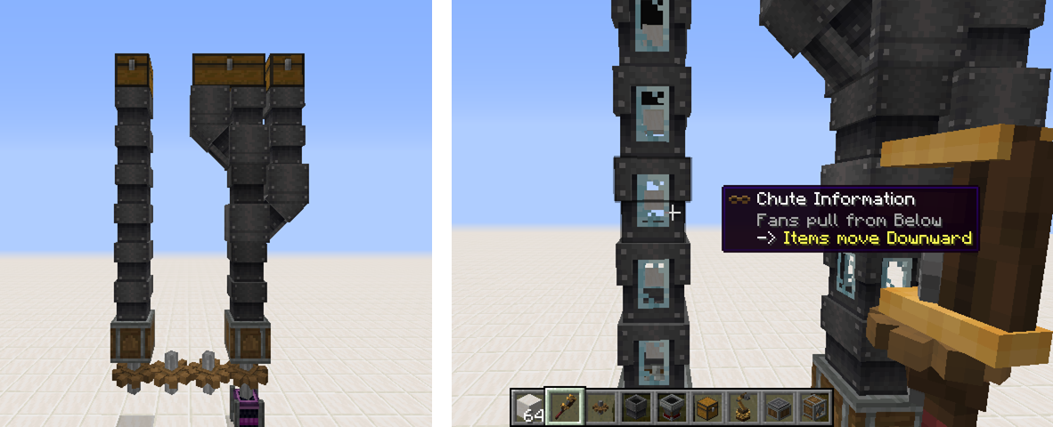 아래는 Chute를 Immersive Engineering의 Iron Sheet Chute와 같이 활용한 모습입니다. (위에서 아래로 아이템 이동)