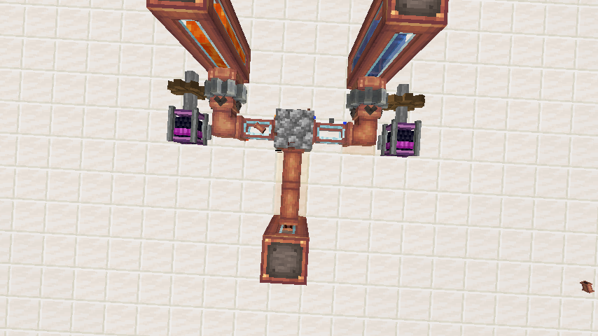 특이하게도 Brass Tunel옆에 설치하면 터널에 구멍을 하나 더 낼 수 있습니다. 이 때 터널은 받은 아이템을 자동으로 나누어 Ejector쪽으로 옮깁니다. Ejector에서 수량을 설정하면 들어오는 아이템 뭉치로부터 해당 수량만큼을 매번 빼낼 수 있습니다. 이 때 Ejector가 아이템을 다른 쪽으로 빼냐야 하므로, 바라보는 방향은 터널 쪽이면 안 됩니다.