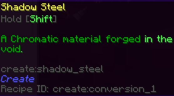 다만, 버전에 맞지 않는 부분도 약간 있습니다. 먼저, Belt Observer는 현재 버전에서 제거되었습니다. 그리고 건축 툴에 사용되는 재료들의 조합법도 바뀌었습니다. Chromatic Compound의 조합법은 현재 다음과 같습니다. 검은 가루는 옵시디언 가루입니다.