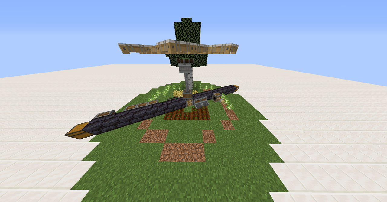 오른쪽 아래에 붙어있는 Mechical Plough는 쟁기 역할과 엔티티를 밀어내는 역할, 레일 등만을 밀어내서 아이템화시키는 역할 등을 하고 있습니다. 오른쪽 위의 Mechanical Harvester의 경우 농작물을 수확해서 다시 심습니다. 이 두 장치는 블럭 옆에만 설치할 수 있으며, 움직이는 구조물에서만 작동합니다.