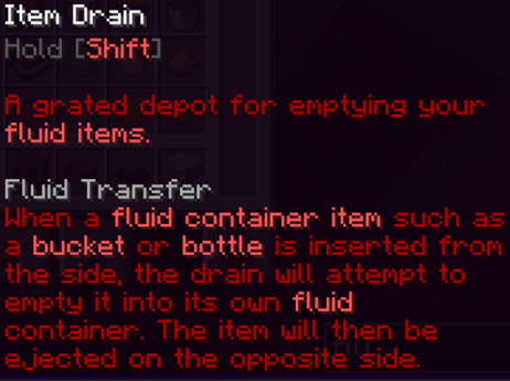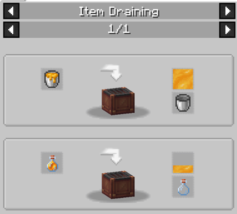 반대로, 아이템 형태에서 유체로 바꾸기 위해 Item Drain을 이용할 수 있습니다. 이 때, 들어온 반대 방향으로 빈 병(or 양동이)가 나간다는 점에 유의해야 합니다.