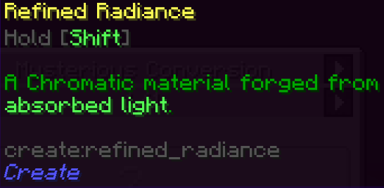 저번 글에서 자세히 설명하지 않아서 추가하자면, Refined Radiance는 근처에 발광석 등을 주변에 설치하면 해당 광원을 부수면서 생성됩니다. 발광석 기준 5개 정도 필요합니다. 다른 광원(횃불 등)도 되긴 하는데, 잘 안될 수도 있습니다. (더 많이 필요하기도 합니다.) 물론, 신호기 Beam을 이용하는 방법도 유효합니다.