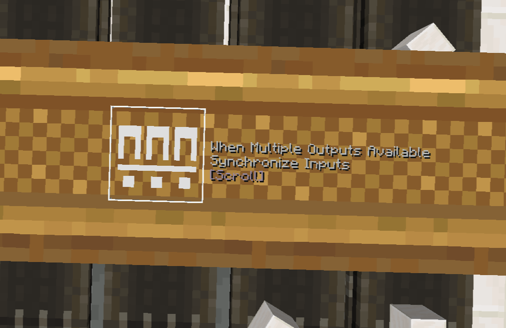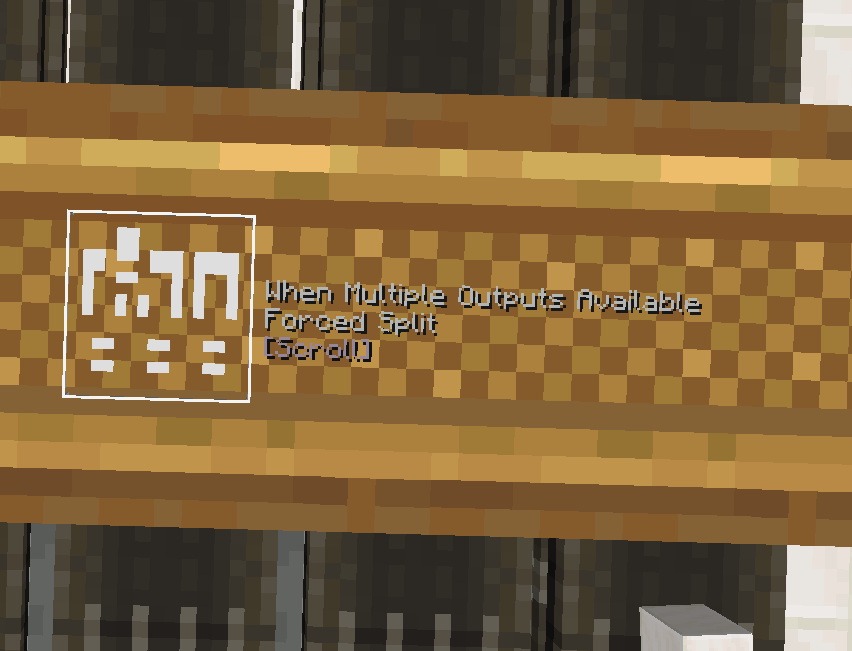 다음과 같이 상단부에 렌치를 들고 스크롤하여 설정할 수 있습니다. (연속된 터널이 한 번에 처리됩니다) Split은 여러 개의 방향으로 아이템이 나갈 수 있을 때, 한 쪽에서 들어온 아이템을 균등하게 나눠주며, Forced Split은 나갈 수만 있다면 들어온 아이템을 무조건 균등하게 나눠줍니다. Syncronize Input은 벨트에서 나가는 타이밍을 맞춰주며, Round Robin은 번갈아가면서 나가도록 합니다. Forced Round Robin은 강제로 그렇게 한다는 의미가 되겠네요. Prefer Nearest는 가까운 한 쪽으로 나오도록 설정하며, Randomize는 랜덤하게 나오게 합니다.