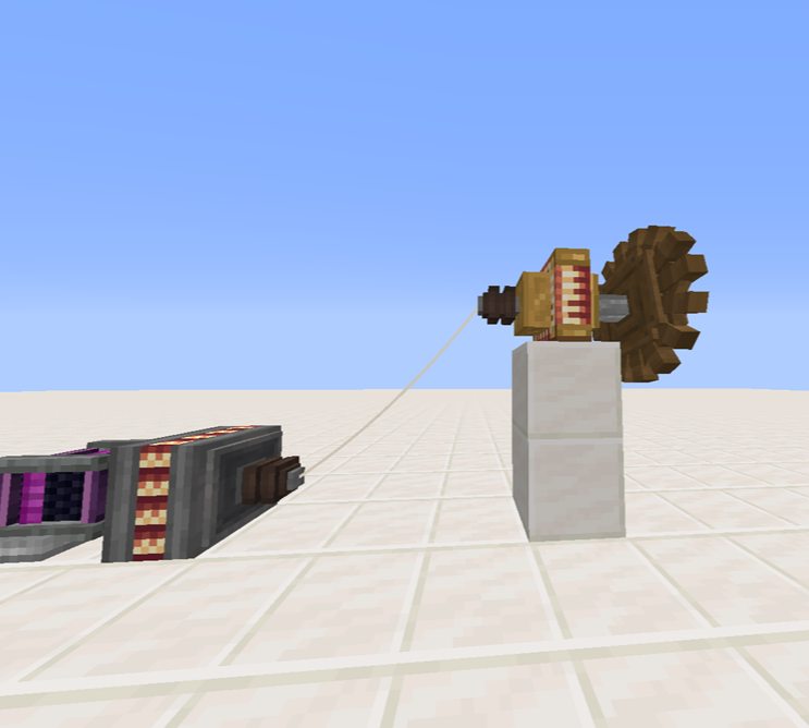 움직이는 구조물과 고정된 구조물 모두 해당 인터페이스를 가지고 있어야 하며, 둘 사이의 거리가 1~2 블럭 정도여야 합니다. 움직이던 구조물의 해당 인터페이스 부분이 고정된 구조물의 인터페이스 가까이로 접근하면 아래와 같이 인터페이스 부분이 튀어나오면서 구조물이 잠시 멈추고, 아이템 혹은 유체가 교환됩니다.