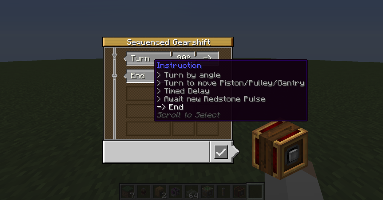 또한, Sequenced Gearshift에 새로 추가된 옵션으로 Await new Restone Pulse, 즉 레드스톤 펄스가 있을 때까지 기다리기가 생겼습니다.