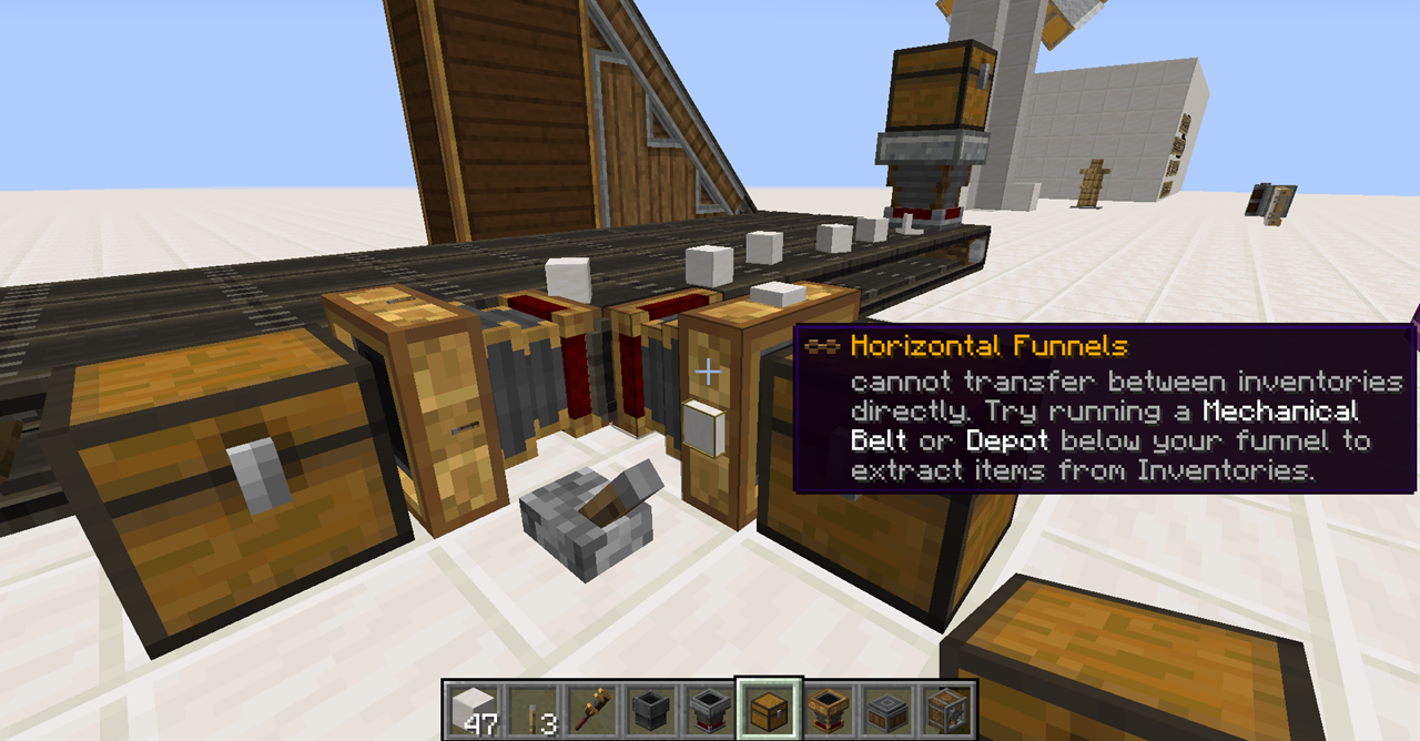 Funnel의 경우 움직이는 구조물에 연결된 인벤토리에 떨어진 아이템을 주워서 넣어줍니다.