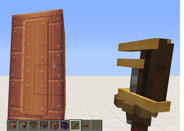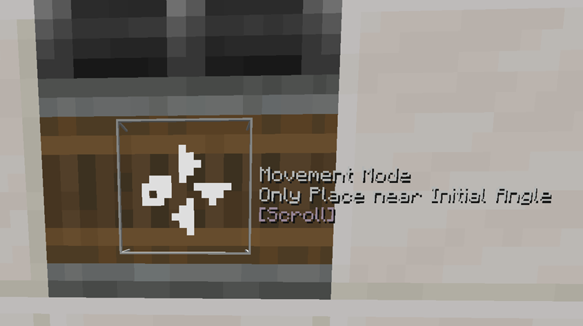 설치 전에 들고 있는 상태에서 SHIFT+우클릭으로 대상을 지정합니다. 바라보는 방향이 있는 블럭이니 유의해야 합니다. 설정을 따로 하지 않으면 바라보는 옆 블럭으로 설정합니다.