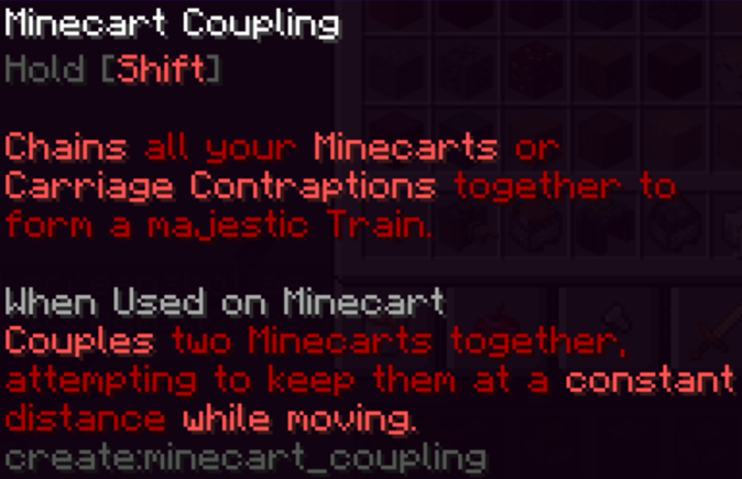 이번 업데이트로 추가된 Controller Rail은 레드스톤 신호가 켜진 경우 표시된 방향으로 갈 경우에만 가속하고, 반대의 경우 감속하도록 합니다. 또한, 이와 함께 추가된 Minecart Coupling은 여러 카트를 연결할 수 있게 합니다.