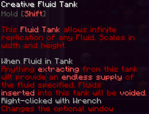 적용되는 유체에는 단순히 물, 용암 뿐만아니라, 꿀, 초콜릿, 우유 등도 들어가 있으며, 포션 및 다른 모드의 유체도 포함됩니다.