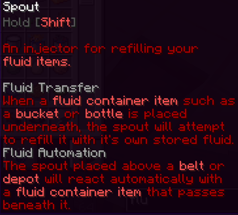 고정된 구조물의 인터페이스가 아이템 혹은 유체를 받을 수 있는 (깔대기가 위에 있거나, 펌프가 유체를 뽑아내는 방향으로 연결되는 경우) 아이템이나 유체를 받아오며, 반대로 아이템이나 유체를 주는 형태로 연결되면 (아래에 깔대기가 있거나, 펌프 방향이 인터페이스에서 나가는 방향인 경우) 아이템 혹은 유체를 구조물에 공급합니다. 오른쪽 스크린샷처럼 애매한 상황이라면 아이템을 줬다가 다시 가져오게 됩니다.