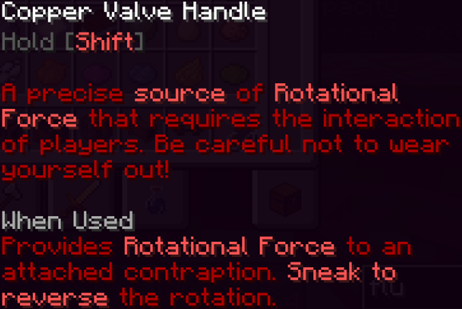 Copper Valve Handle을 동력원으로 이용할 수도 있습니다. 하지만 16 RPM이 기본이고, 이때 Stress Capacity가 128SU임에 유의해야 합니다.