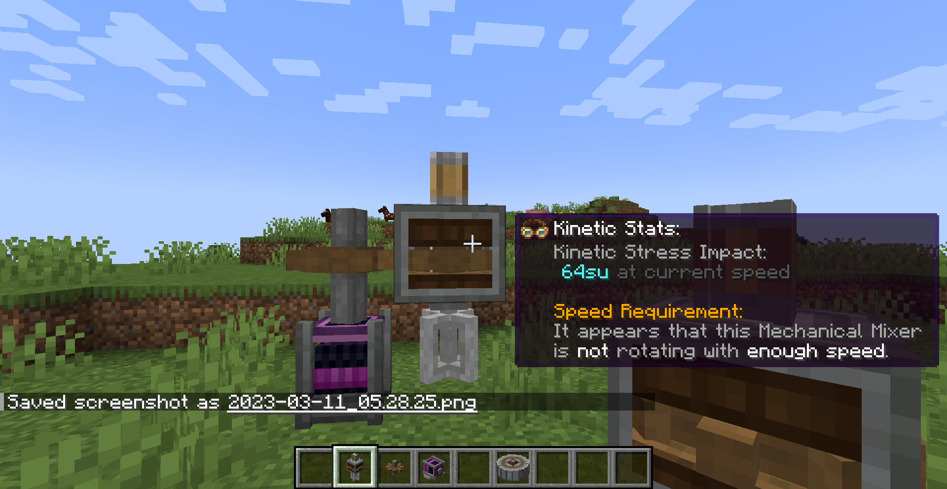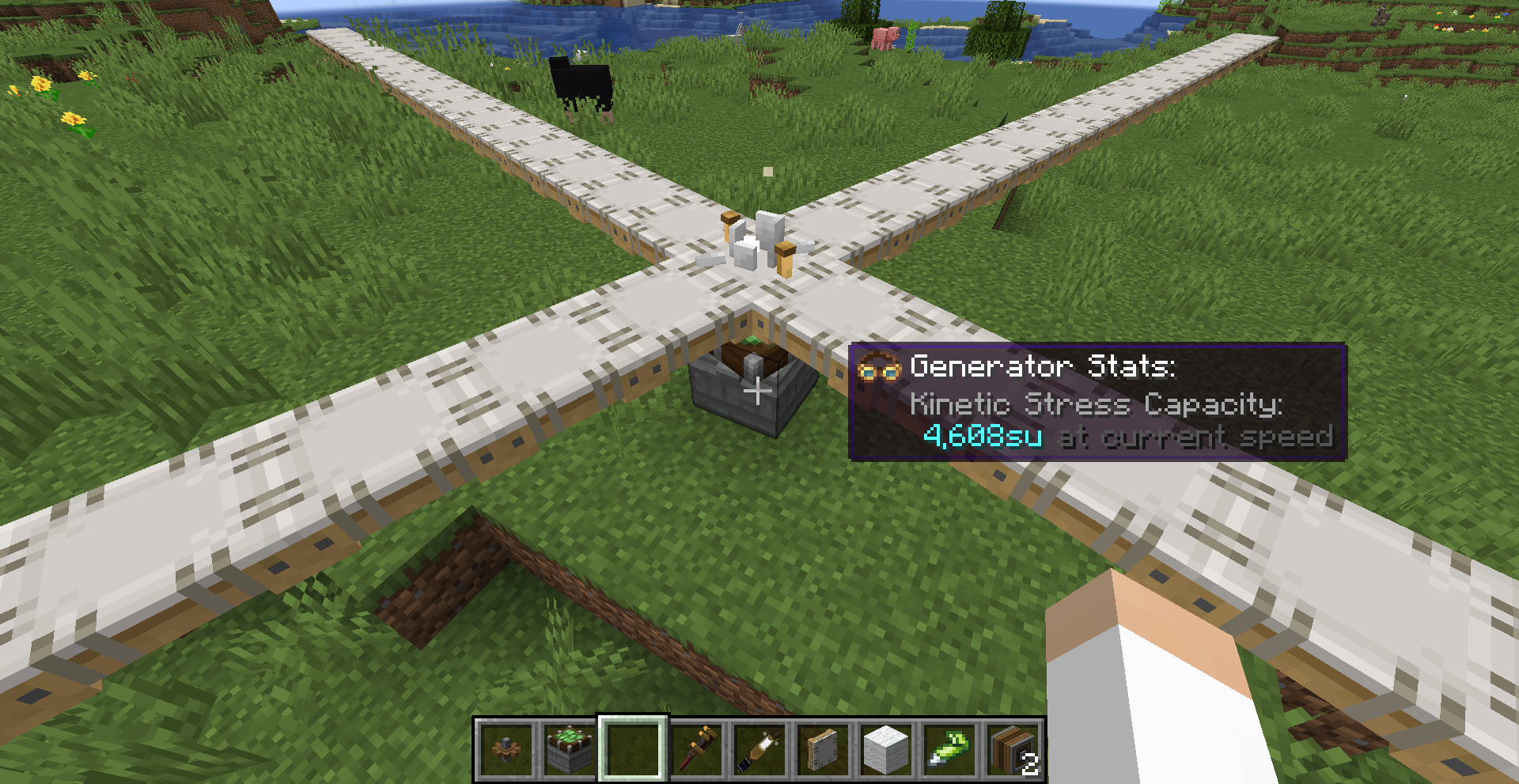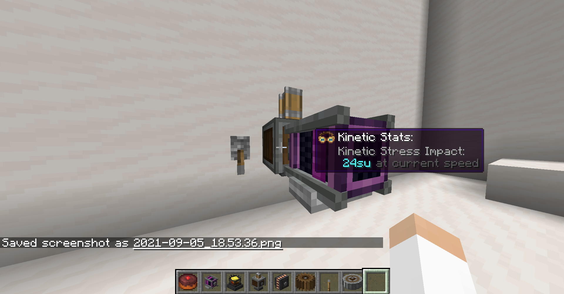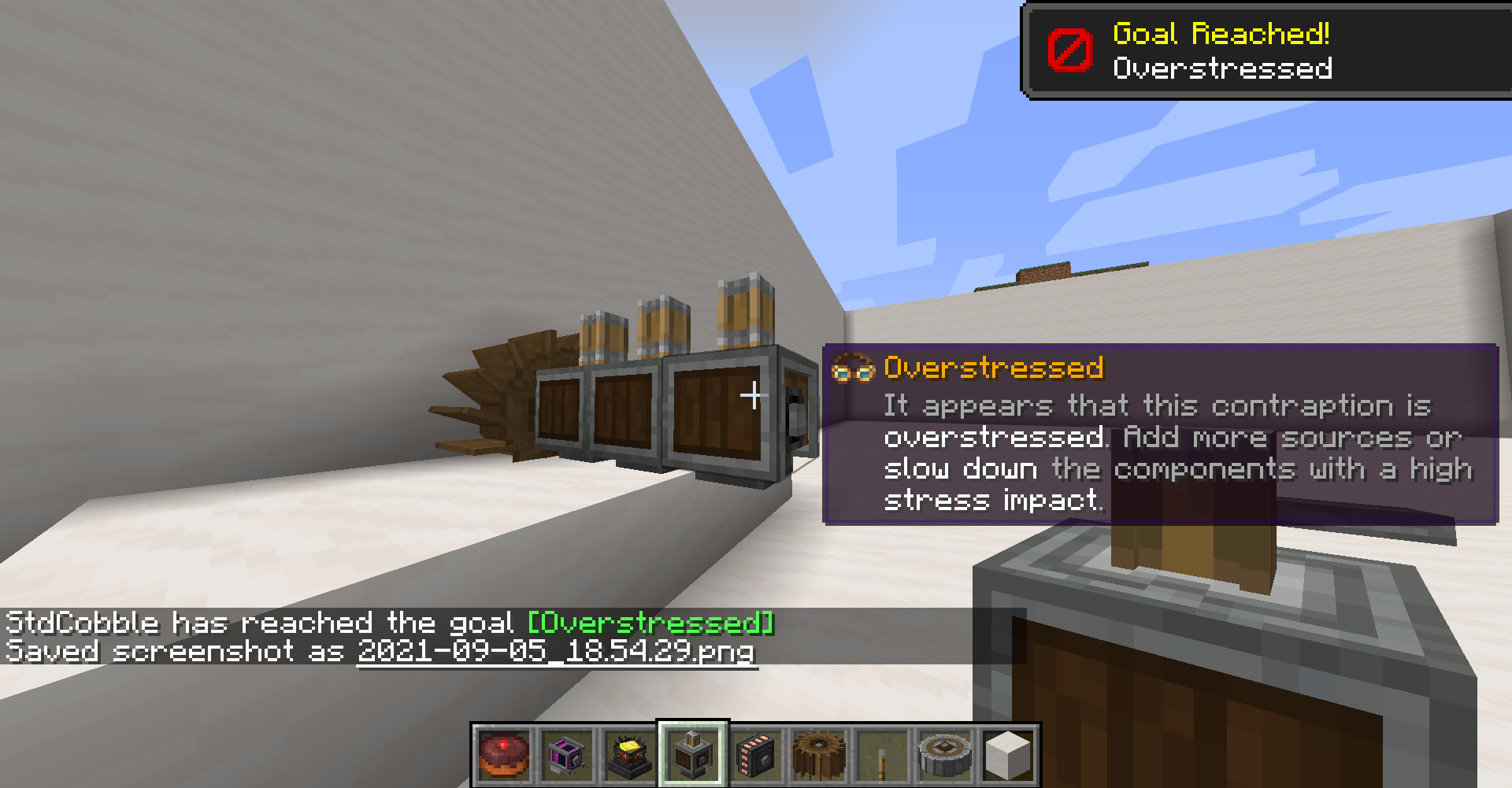 Create 모드의 동력 전달 및 제어는 상당히 직관적인 편입니다. 기어, 축, 벨트 모두 우리가 생각하는 방식대로 작동합니다. 그 외의 블록들도 Ponder 화면에서 그 사용법을 확인하실 수 있으므로 사용법 정도는 생략하겠습니다. 각 장치가 소모하는 동력 부하 수치들도 Goggle을 끼거나, tooltip (마우스를 아이템 위에 올릴 때 표시되는 설명들)에서 Shift 키를 눌러서 확인할 수 있는 경우가 많기에 생략하고자 합니다.