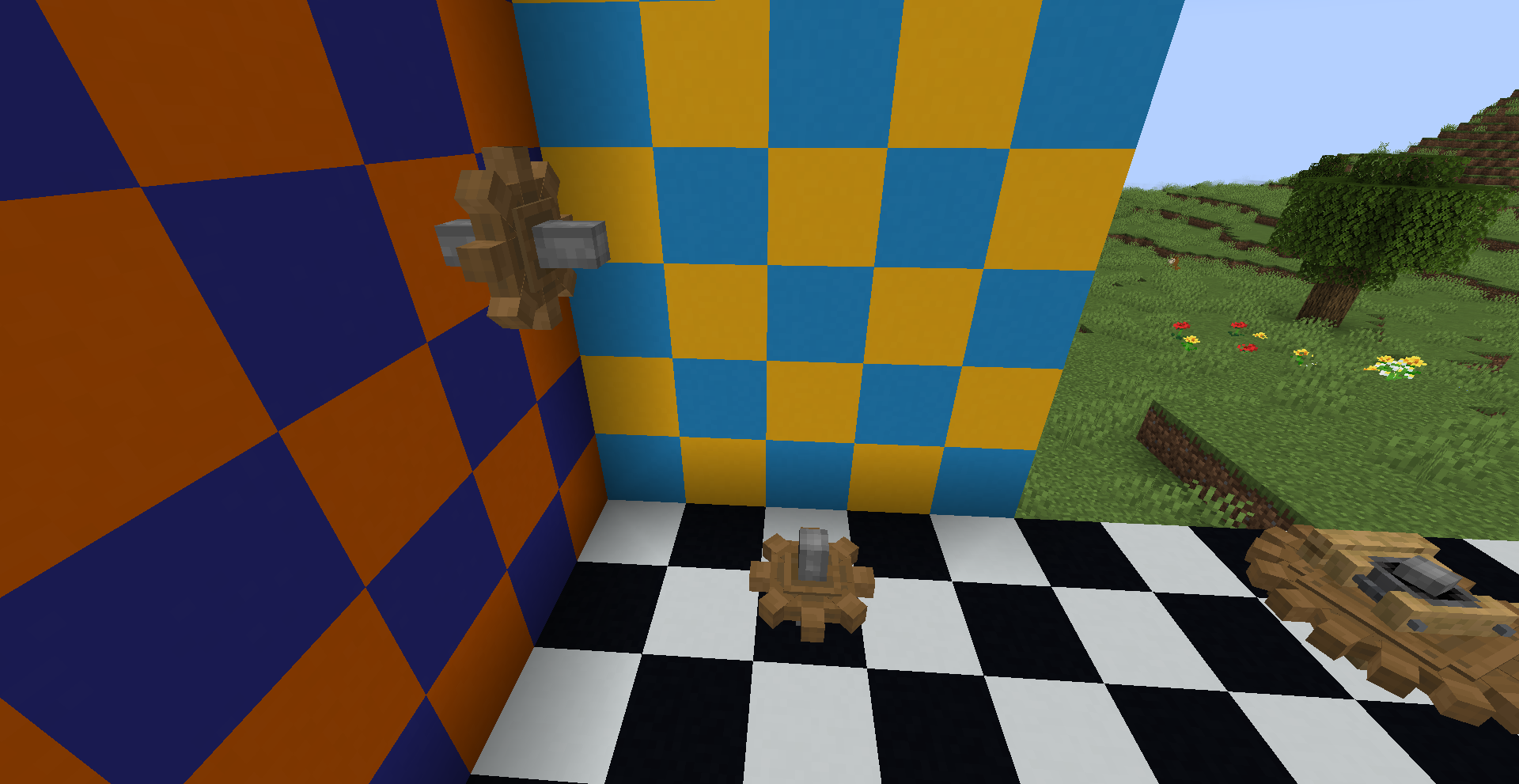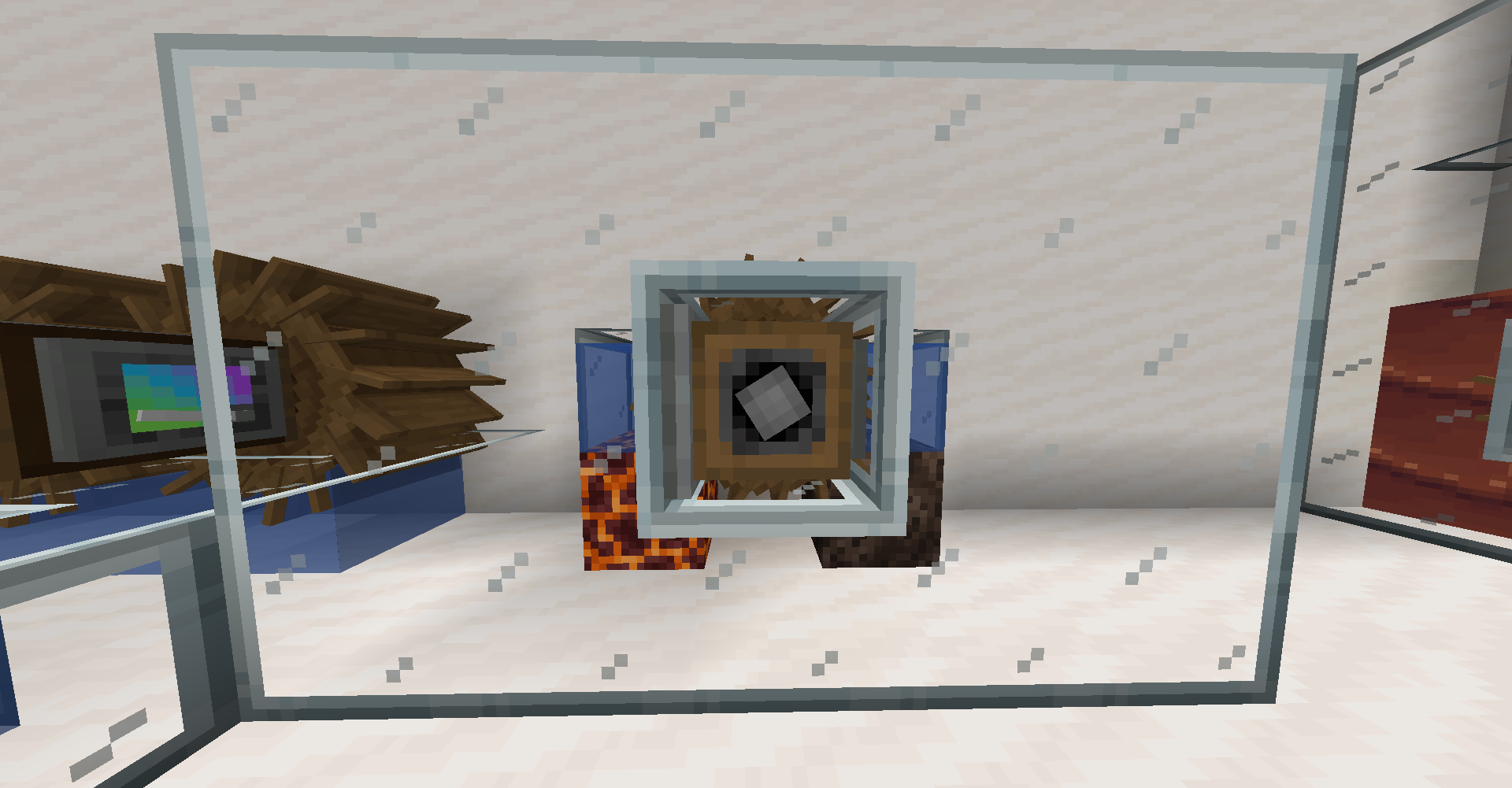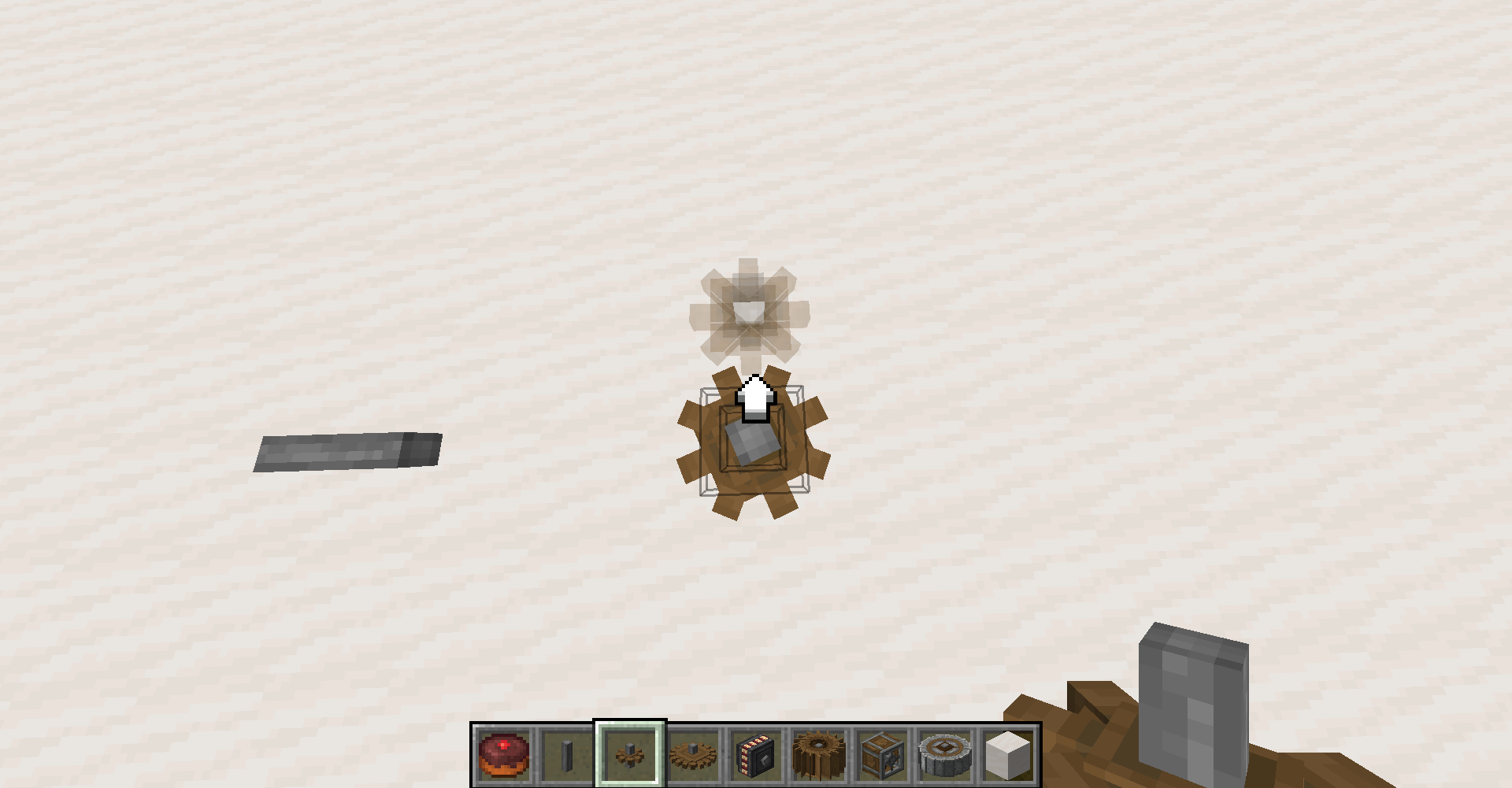 회전하는 블럭들은 엔티티처럼 취급되며, 물은 통과 가능하나 몹이나 아이템 등은 불가능합니다. 엔티티이기에 잘 설치만 하면 겹치기도 가능합니다. 다만 멈췄을 때 다시 블럭이 설치되므로 기존에 설치된 블럭이 아이템화될 수 있습니다.