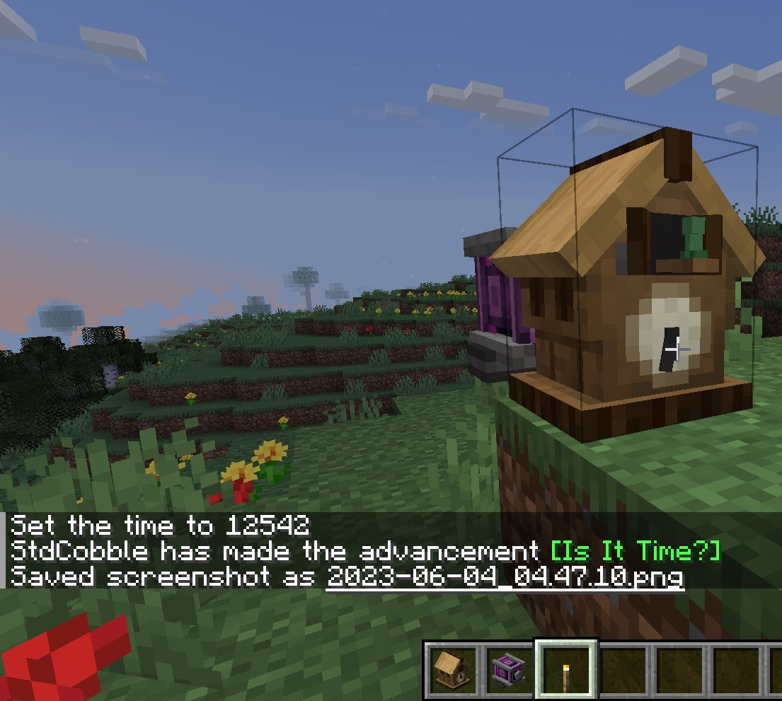 뻐꾸기시계의 경우 시계를 알려주는 장치로, 아침(time set day로 설정되는 시간)과 저녁 (잠잘 수 있기 시작할 때)에 돼지와 크리퍼 형상과 함께 소리로 알려줍니다.