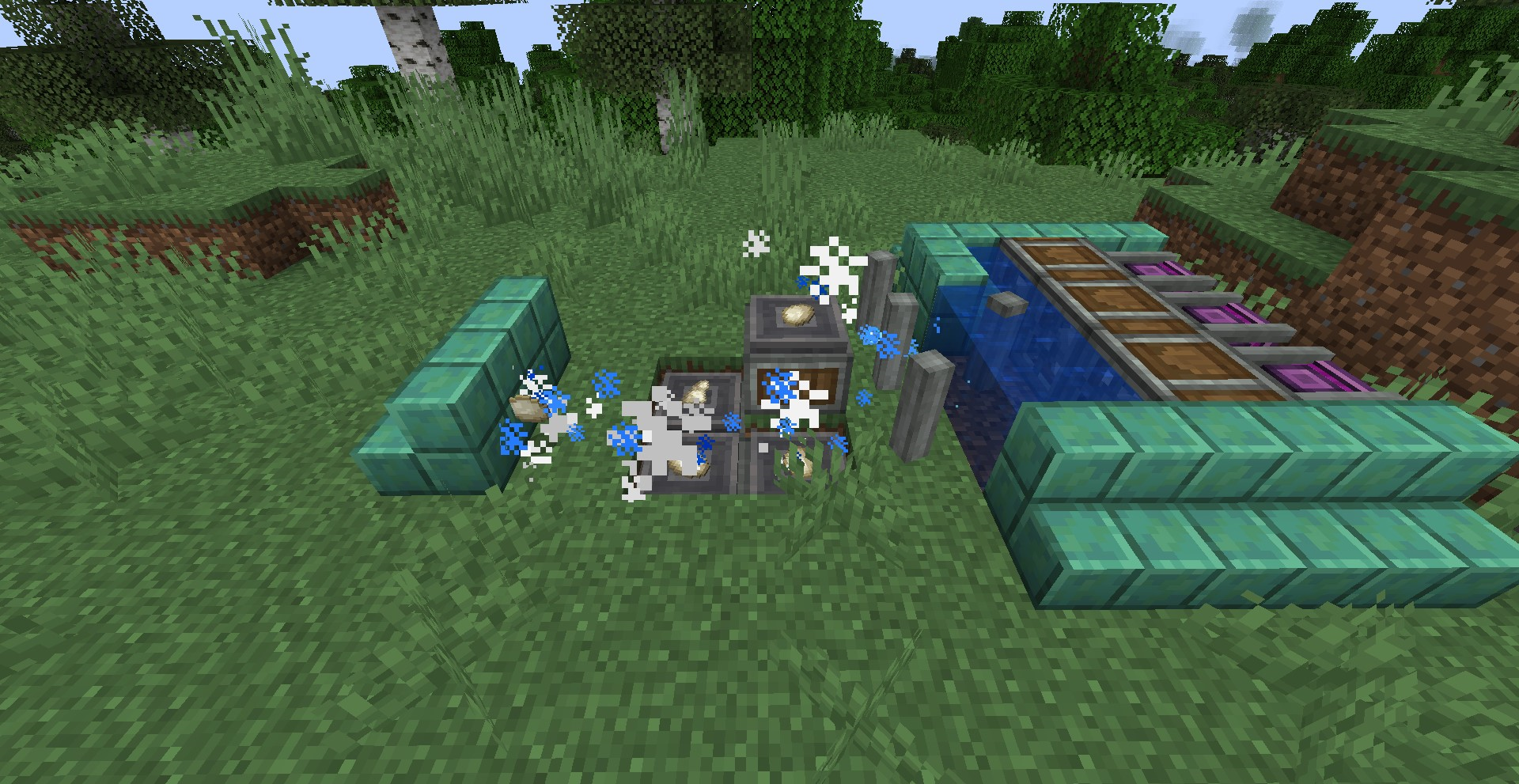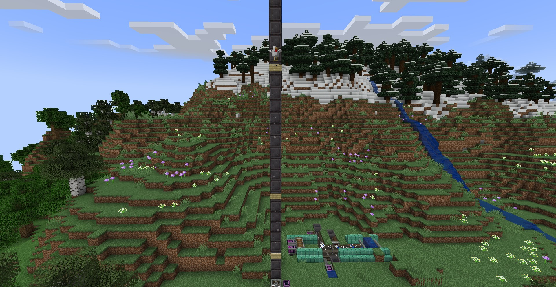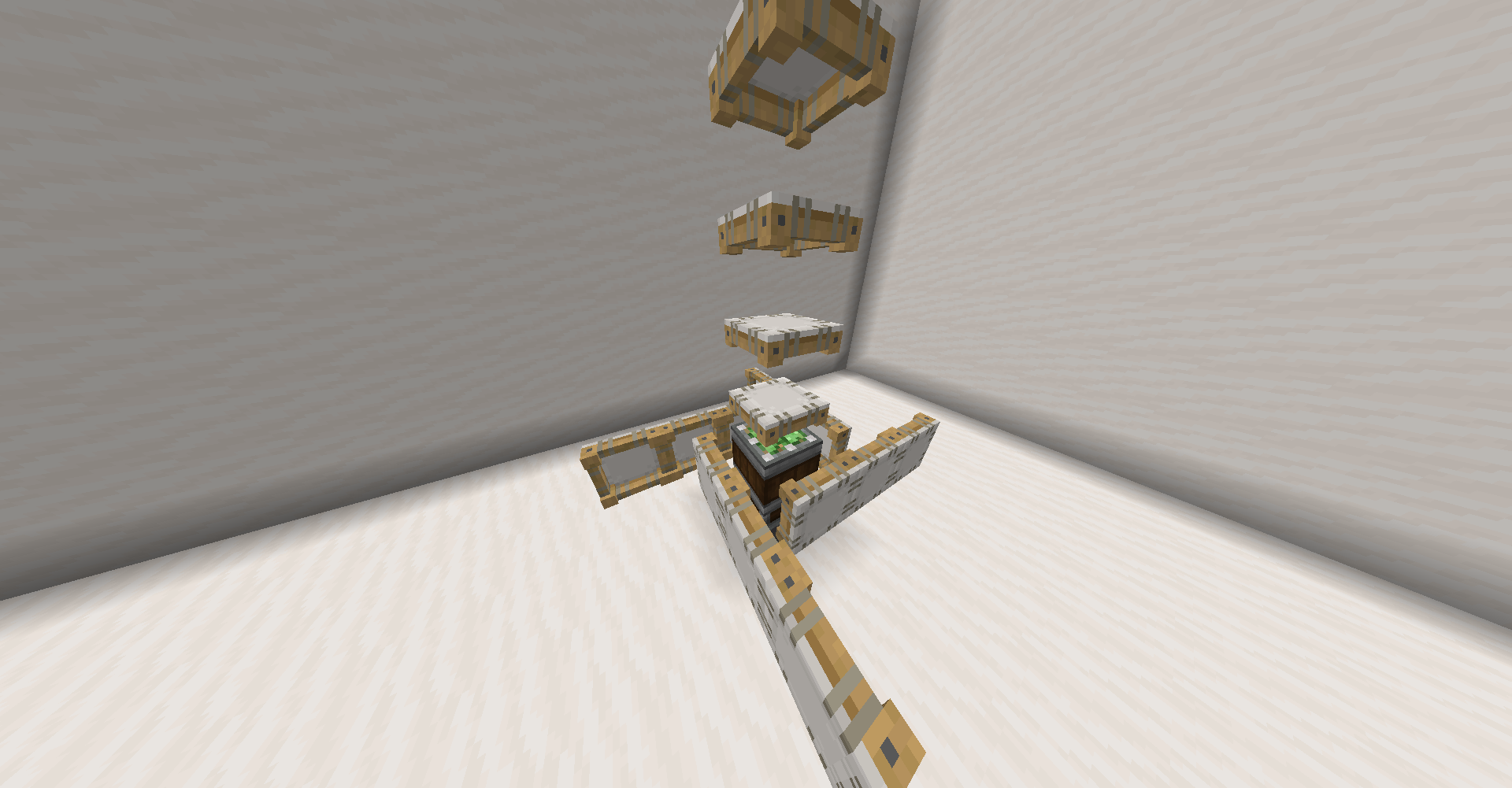 아래와 같이 설치하면 한 평면 내에서 굉장히 많은 Water Wheel을 설치할 수있습니다. 하나당 320 SU이므로, 25.6 Water Wheel at 20 RPM = 1 Windmill at 16 RPM, 1.6 Water Wheel at 20 RPM = 1 Windmill at 16 RPM, 102.4 Water Wheel at 20 RPM = 1 Furnace Engine at 32 RPM과 동등한 성능을 냅니다.