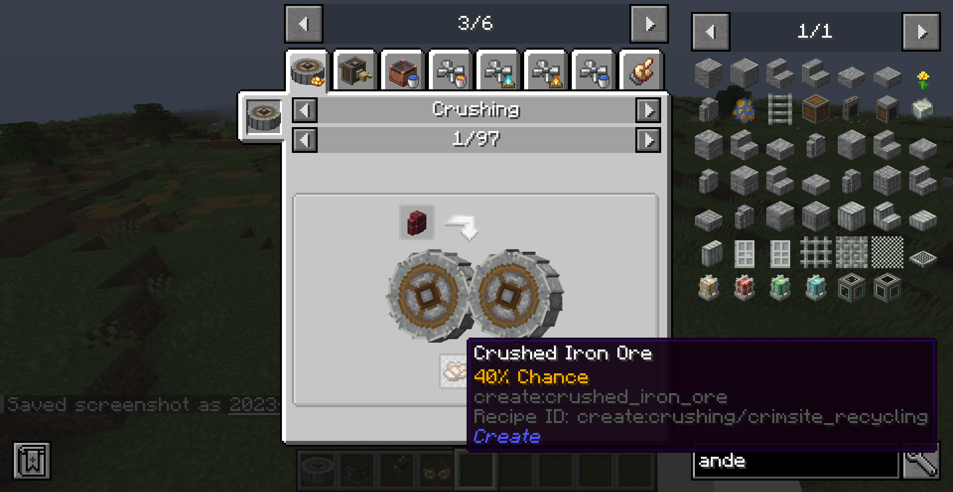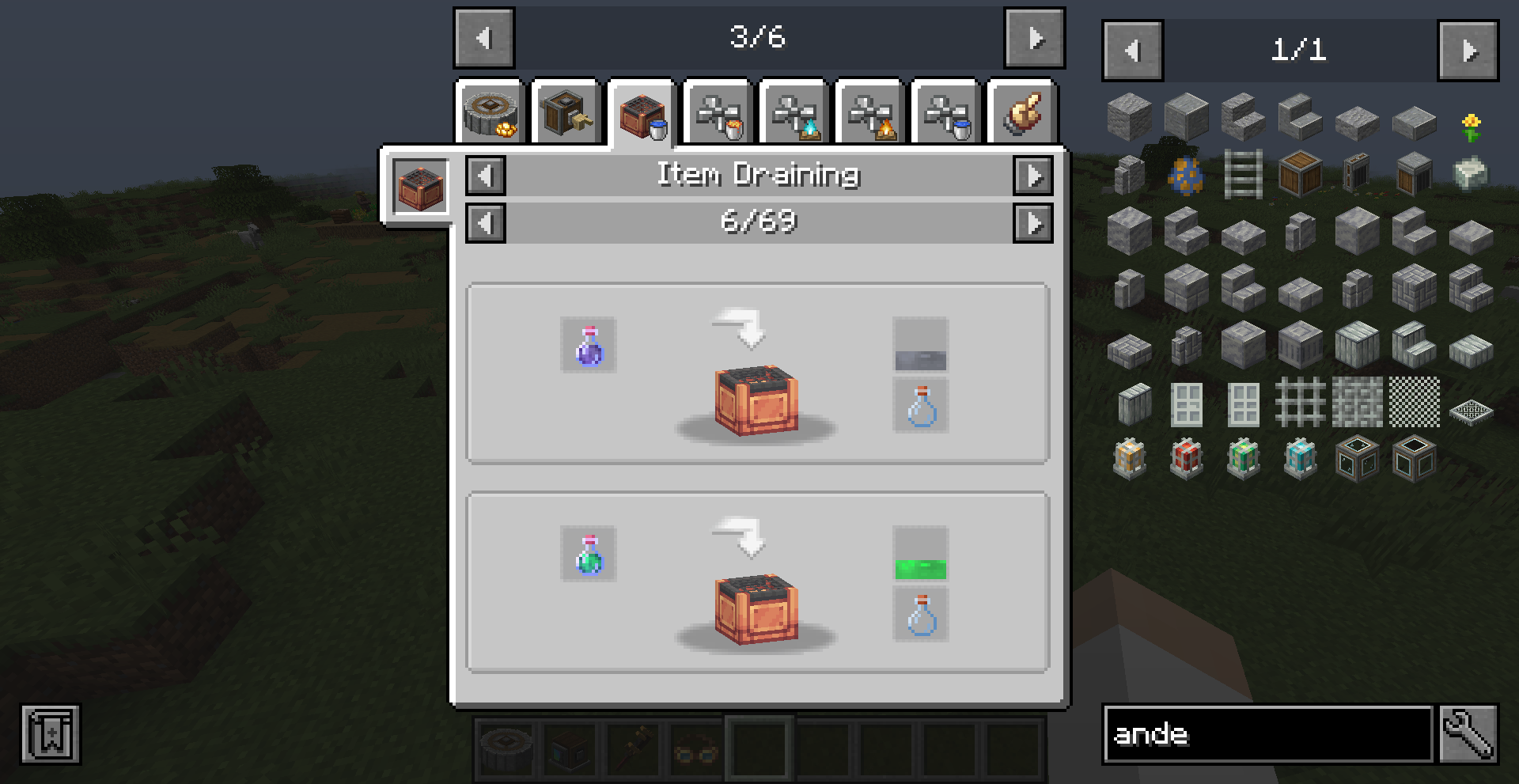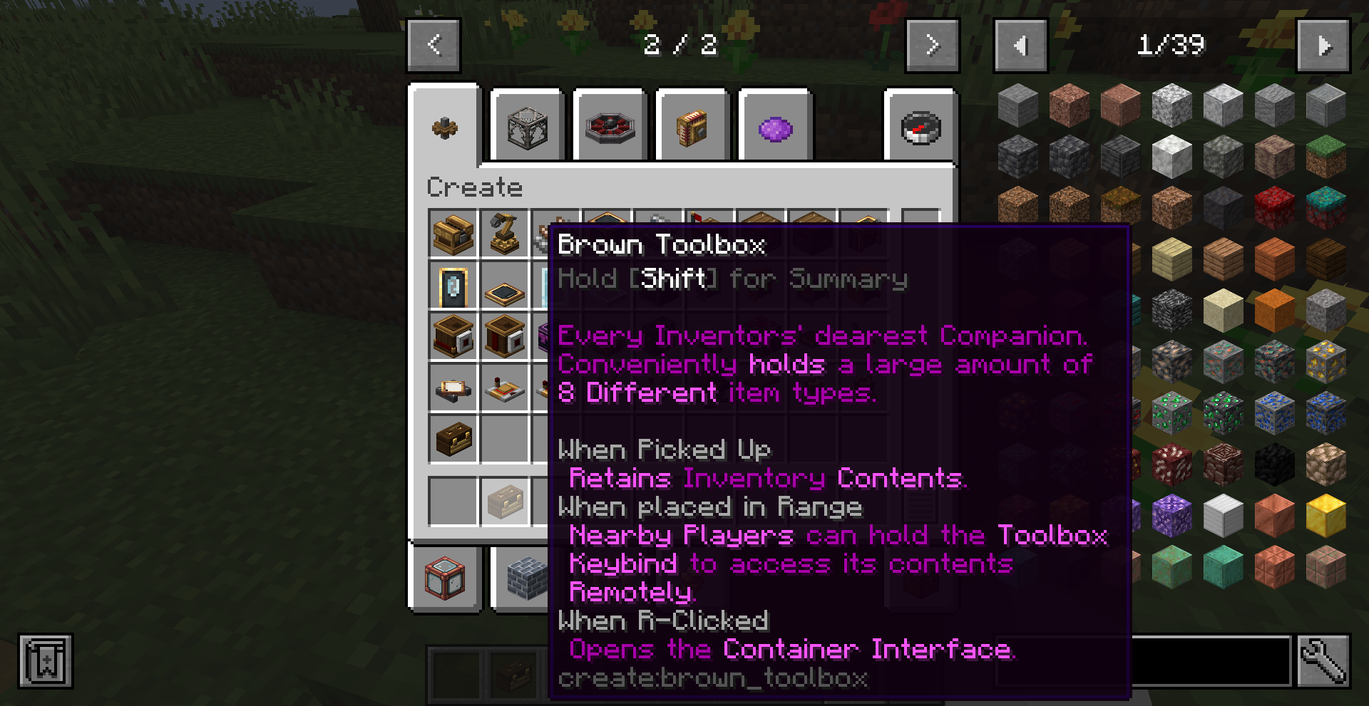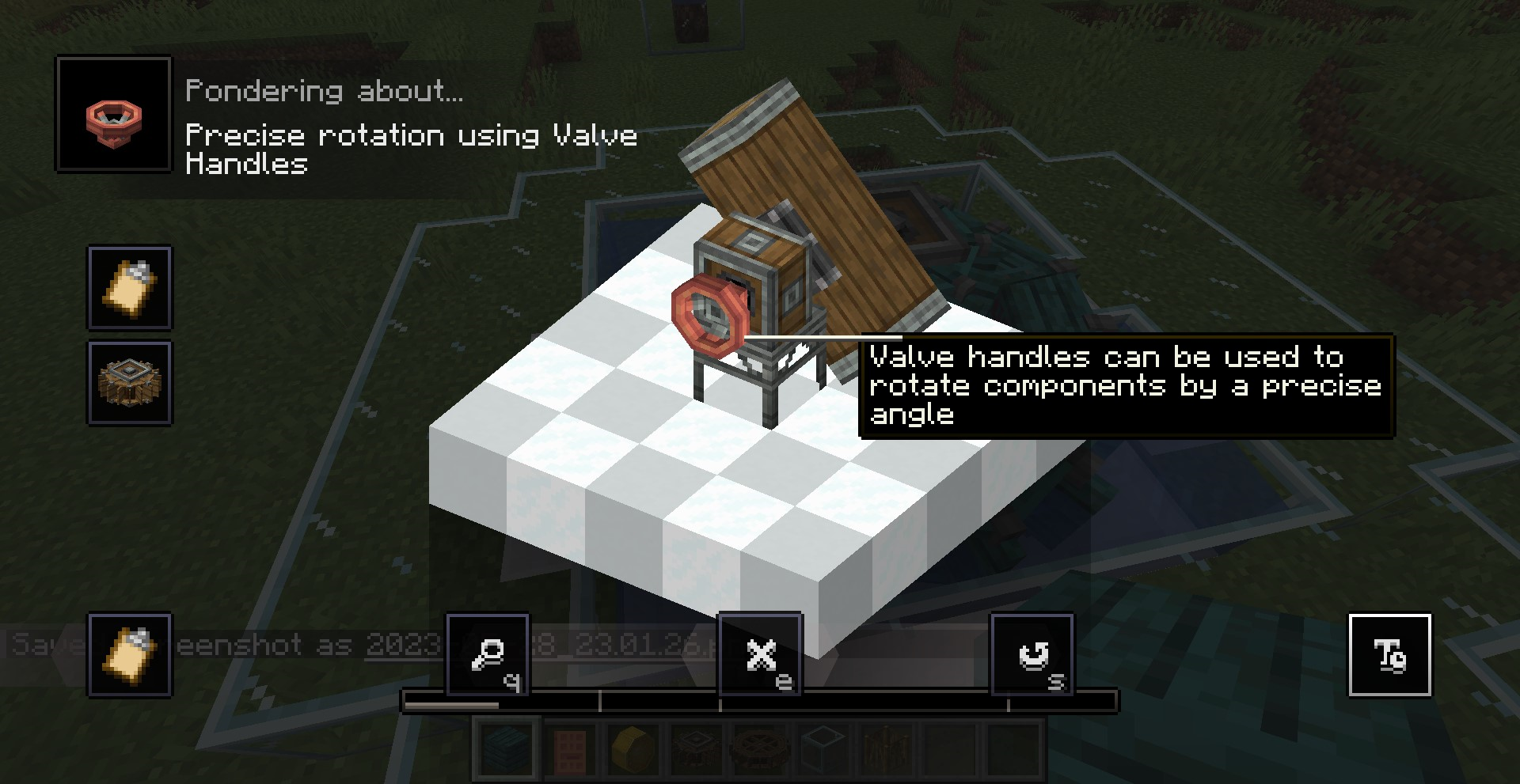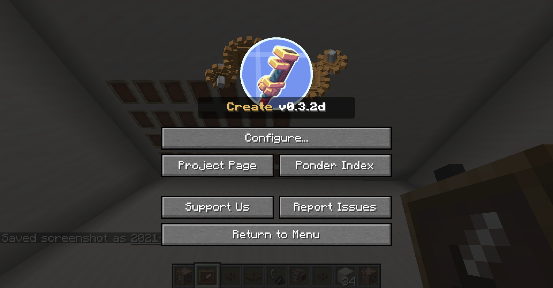 Create 0.3 버전의 큰 차이점 중 하나는 Ponder 기능입니다. 모드의 여러 기능을 직관적으로 설명해줍니다. 전반적인 설명을 보기 위해서는 게임 메뉴에서 왼쪽의 고글 모양을 클릭한 뒤, Ponder Index를 누르면 됩니다.