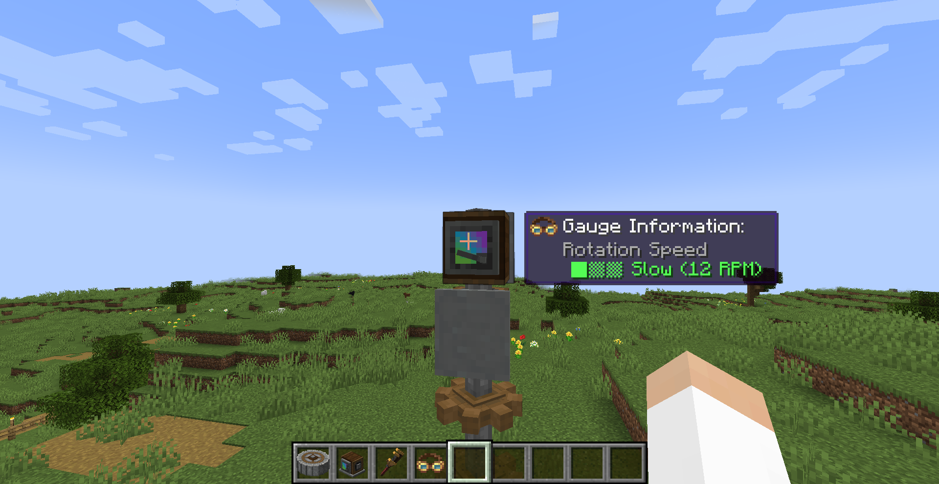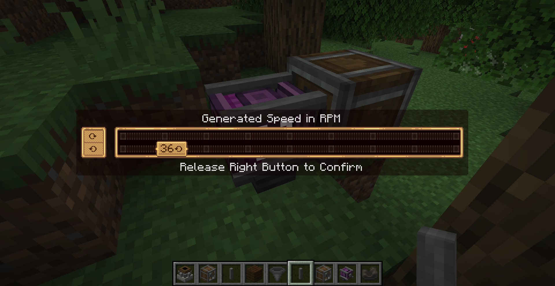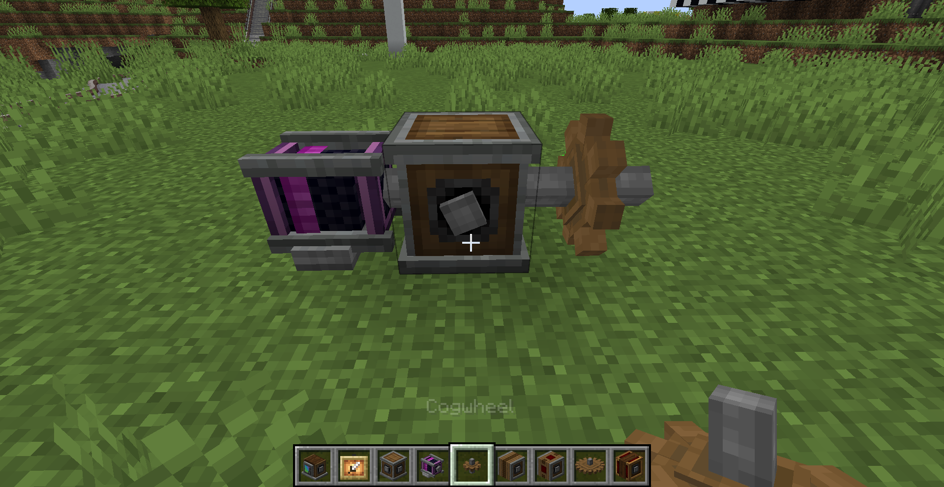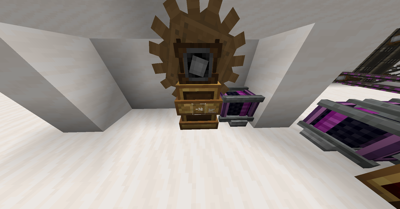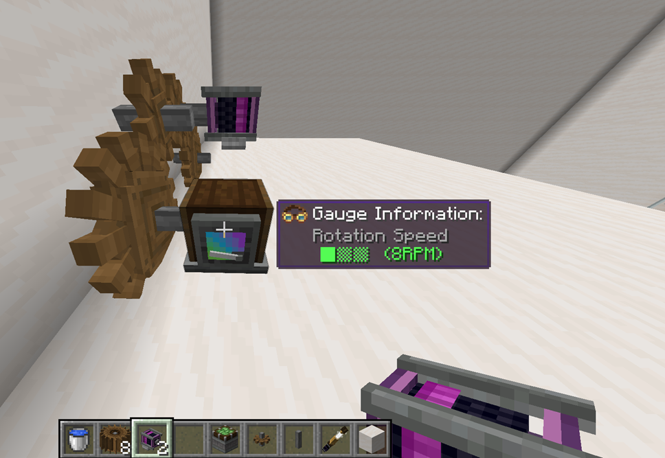 아래 하얀색 박스 부분에 커서를 대고 스크롤하여 속력을 조절할 수 있는 장치입니다. Large Cogwheel은 직접 위에 설치하여야 하며, 장치 옆에서 동력을 주면 Cogwheel이 맞춰서 돌아갑니다.