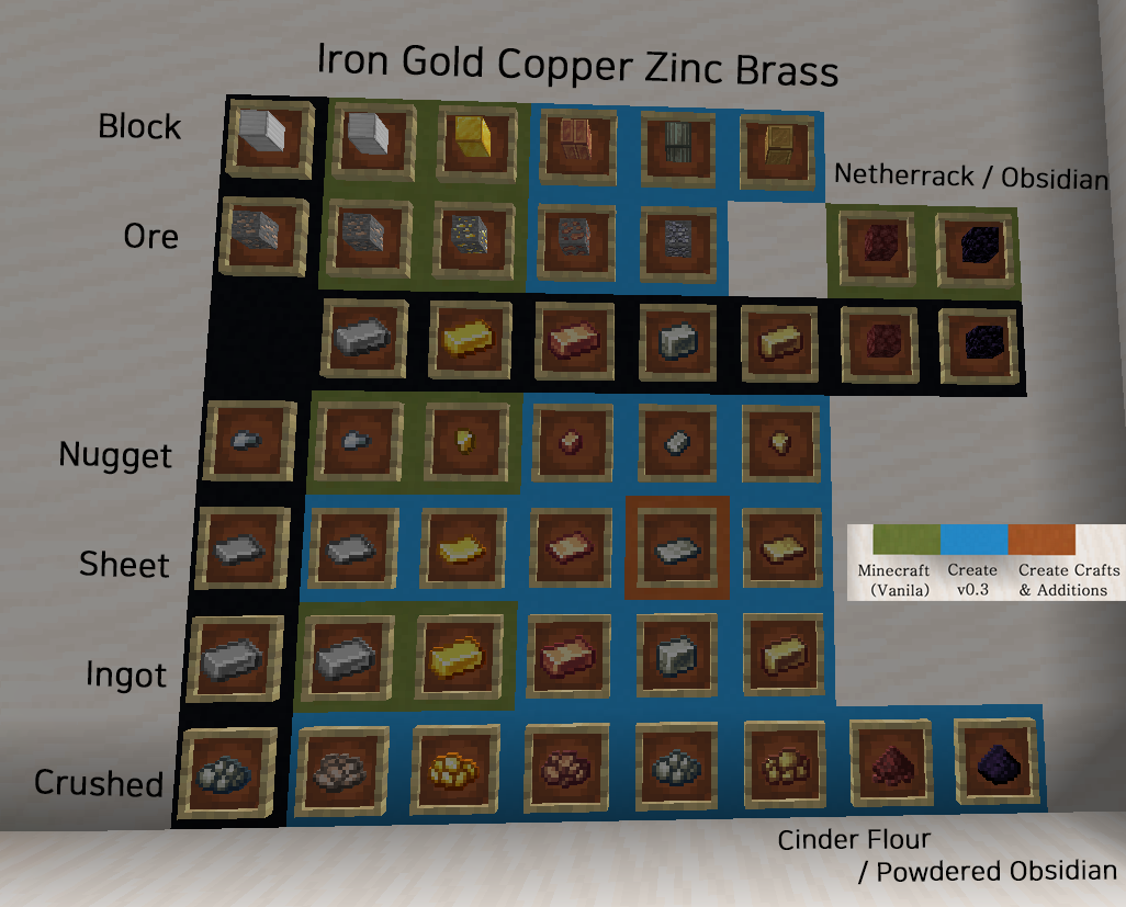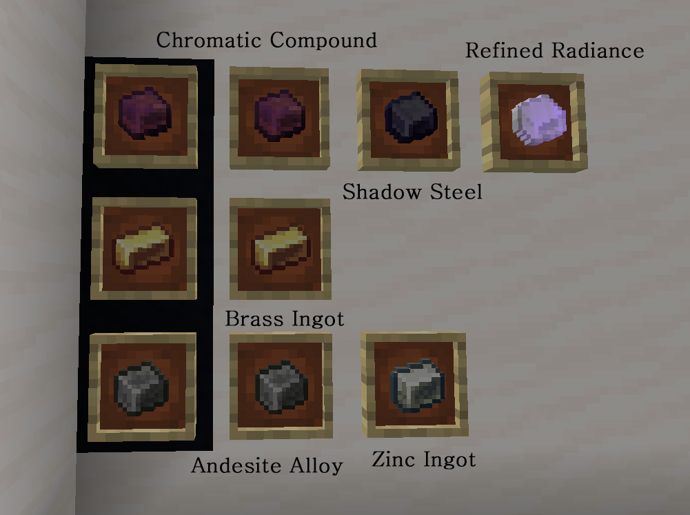 이러한 재료로 부터 Andesite Alloy와 Brass(황동) 등의 재료를 만들 수 있습니다.