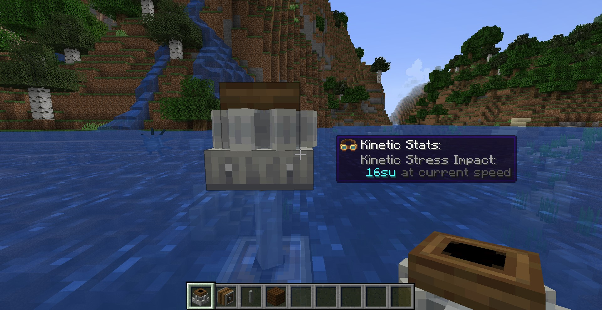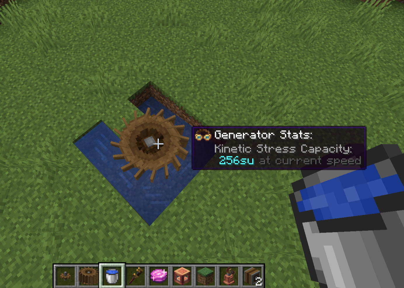 Water wheel의 경우 세워서 사용하는 것이 보편적이지만 렌치로 눕혀서 사용도 가능합니다. 설치 위치를 기준으로 위아래 양 옆에 물의 흐름이 있을 때 이에 비례해서 회전합니다. Stress Capacity는 16 SU/RPM이며, 회전 속도는 6~20 RPM입니다. 흐르는 유체면 사실 다 가능해서, 용암이나 꿀도 가능합니다.