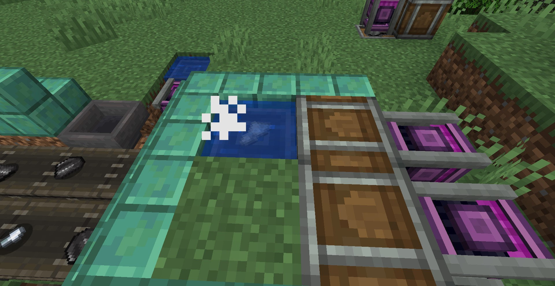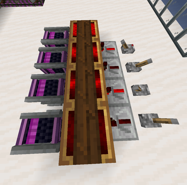 아래와 같이 화살을 한 군데로 모아두었다가 한 번에 발사하는 장치를 만들어 볼수도 있습니다. 다만, 생각보다 화살이 한 방향으로만 날아가지는 않아서 그렇게 유용하지는 않습니다. (오히려 Weighed Ejector를 이용하는 게 더 편할 거라 생각하는데요, 나중에 다시 언급하겠습니다.)