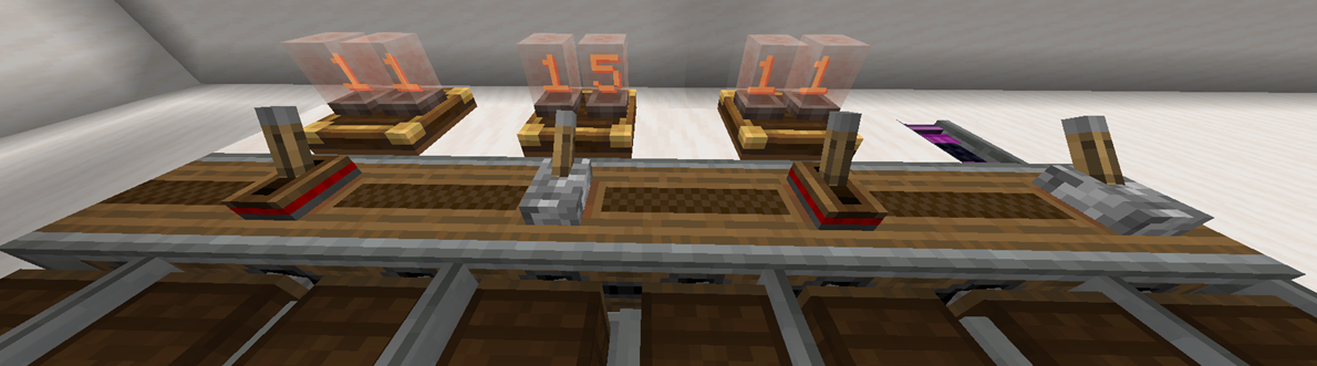 레드스톤 신호는 0~15까지 나뉘는 데요, 일반 레버의 경우 15의 출력을 냅니다. 이 경우 Adjustable Chain Gearshift에 16 RPM이 걸리면 2배인 32 RPM이 연결된 Chain Drive에 걸리게 됩니다. 만약 아날로그 레버로 5단계에 맞췄다면, 16 RPM입력을 (1 + 6/16) × 16 = 22 RPM으로 내놓게 됩니다.
