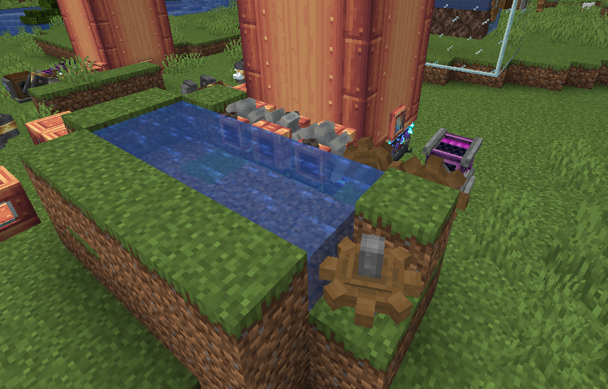 물 공급은 mB/tick 값으로 계산한 값에 비례하여 증가하는 데, 구체적인 식은 크게 쓸모가 없을 거라 생각합니다. 제 경우 128 RPM으로 돌아가는 펌프 3개로 최대 물 공급 레벨을 달성할 수 있었습니다.