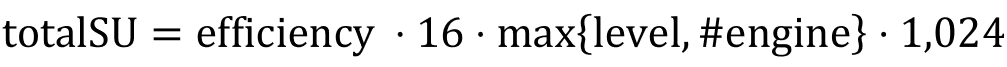 각 엔진의 회전 속력은 64 RPM, stress capacity는 1024 x 1 x 64 / 4 = 16,384SU입니다.