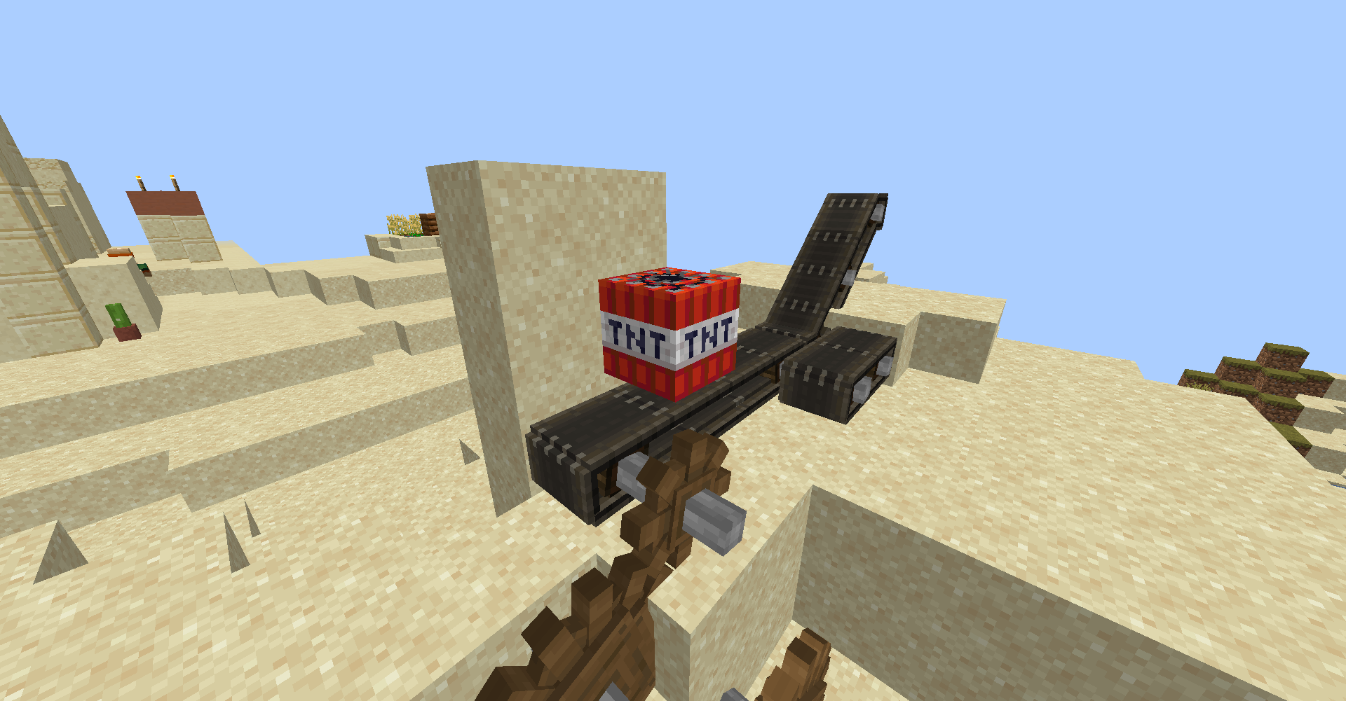 당연히 점화된 TNT도 영향을 받기에 TNT 캐논이나 혹은 TNT를 한 곳으로 빠르게 밀집시켜서 엄청 강력한 인간 대포를 만들수도 있습니다.
