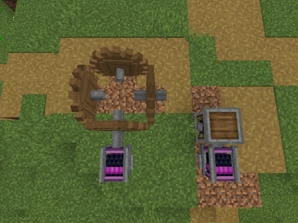 여기서 영혼모래를 이용할 수 있기에 아래와 같은 배치가 가장 효율적 (20RPM)입니다. 병렬로 연결하면 작은 풍차에 맞먹는 동력을 얻을 수 있습니다.