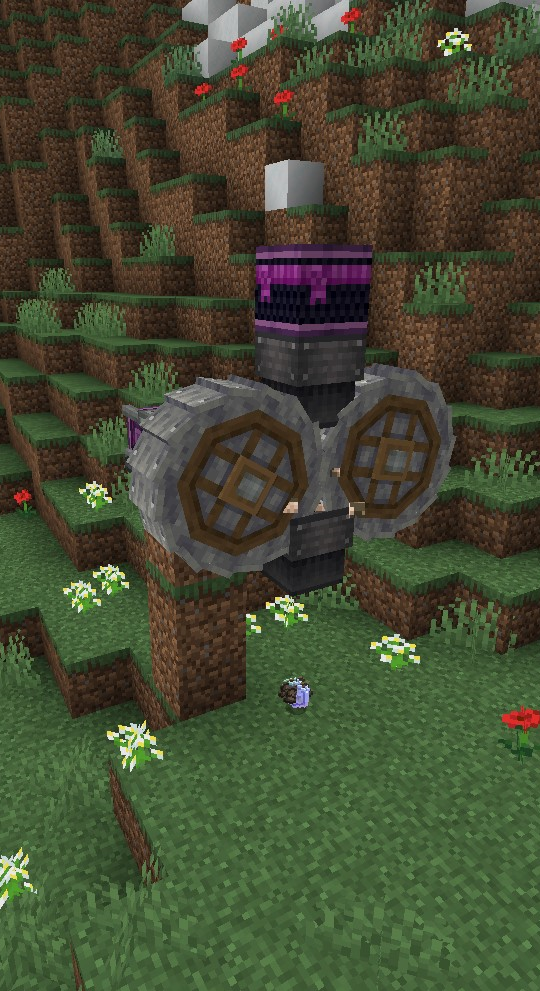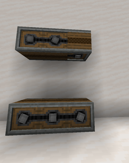 이 때 회전하는 블럭은 블럭이 아니라서 블럭과 겹쳐도 되지만, 멈출 경우 기존 블럭을 파괴하고 설치됩니다. 또한, 움직이면서 엔티티(아이템, 몹, 플레이어 등)를 만나면, 엔티티가 밀려납니다. (위에 서있어도 엔티티는 움직이게 됩니다. 다만 바라보는 방향은 변하지 않습니다.)