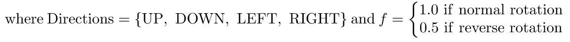 기어 박스의 경우, 같은 AxisDirection (Positive or Negative)끼리 방향이 반대이고, 같은 Axis (x, y, z)끼리 방향이 반대입니다. 즉, 동쪽(Positive x) 에서 (x,+)방향의 회전이 들어왔다면, 남쪽 (Positive y)는 (y,–)의 회전을 가지게 됩니다. '기어' 박스여서 그런지 방향이 반대가 됩니다.