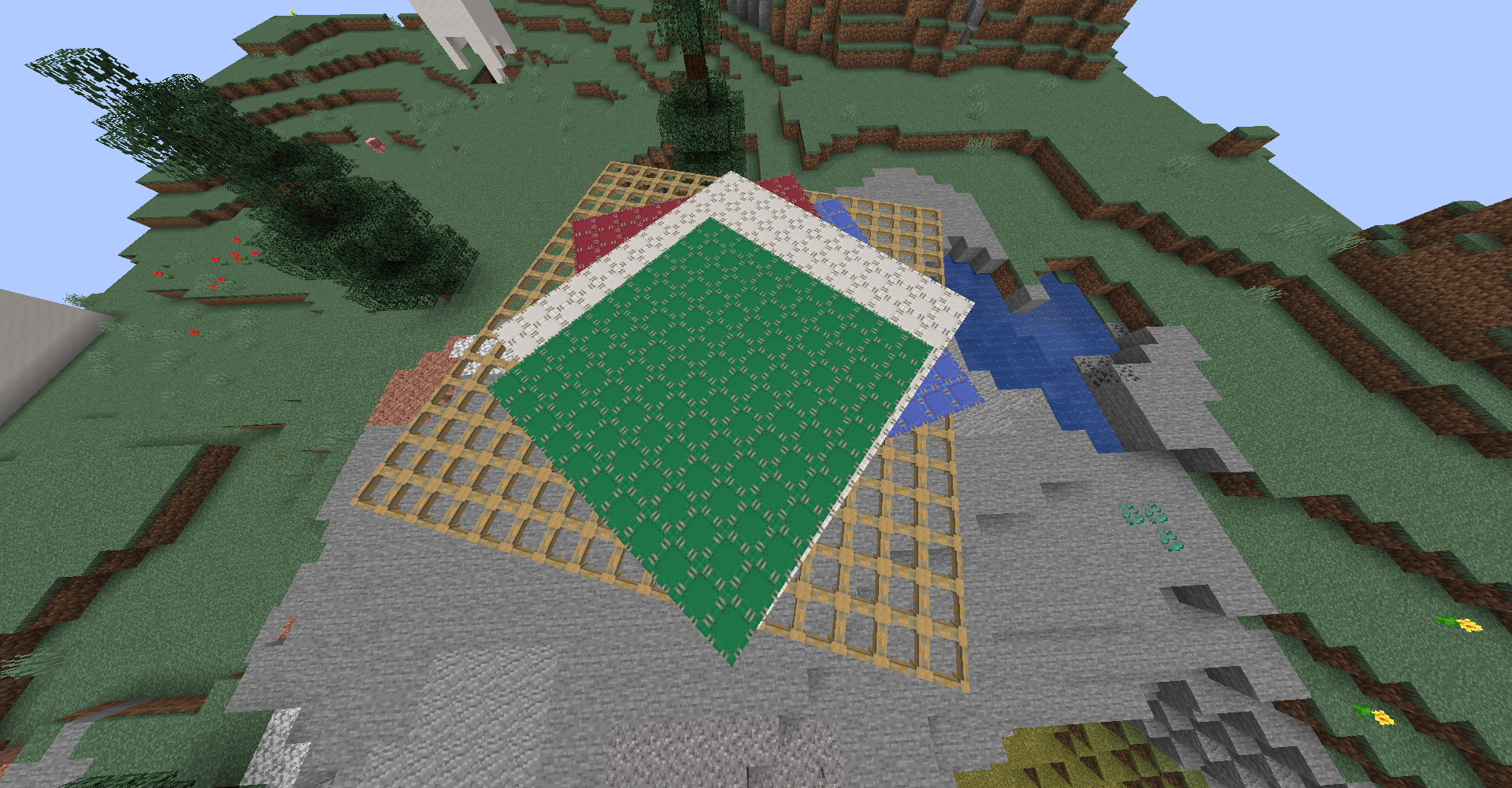 아래는 임의의 17×17 영역에서 구리와 아연 광석의 위치를 표시한 스크린샷입니다. 지형은 y 80 정도인 mountains 바이옴이였습니다.