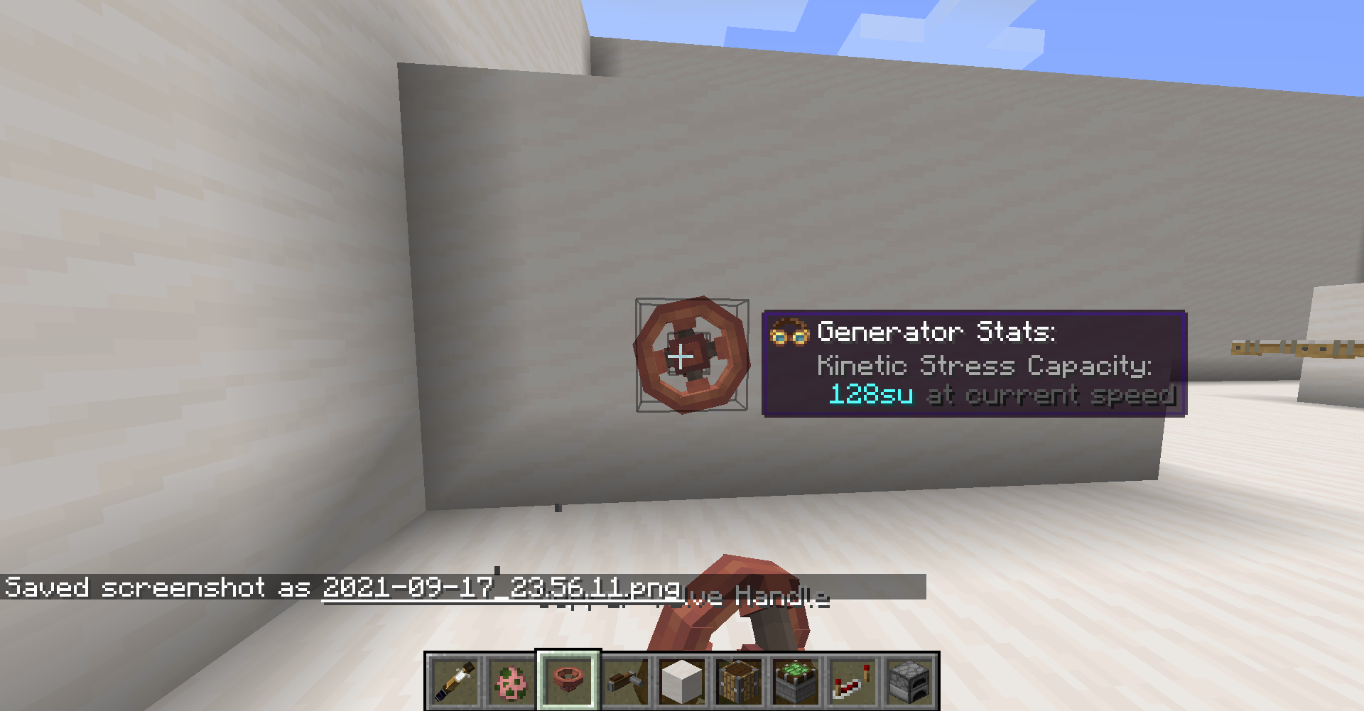 Hand crank와 Valve handle은 간단하니 여기서는 생략하겠습니다. 자세한 사항은 tooltip이나 ponder 화면을 참고하시면 될 것 같습니다. 각각 256 SU, 128 SU를 생산합니다. 8 RPM으로 돌아갑니다. 참고로 밸브는 염색도 가능합니다! (밸브 색별로 config에서 stress capacity를 바꿀 수도 있습니다)