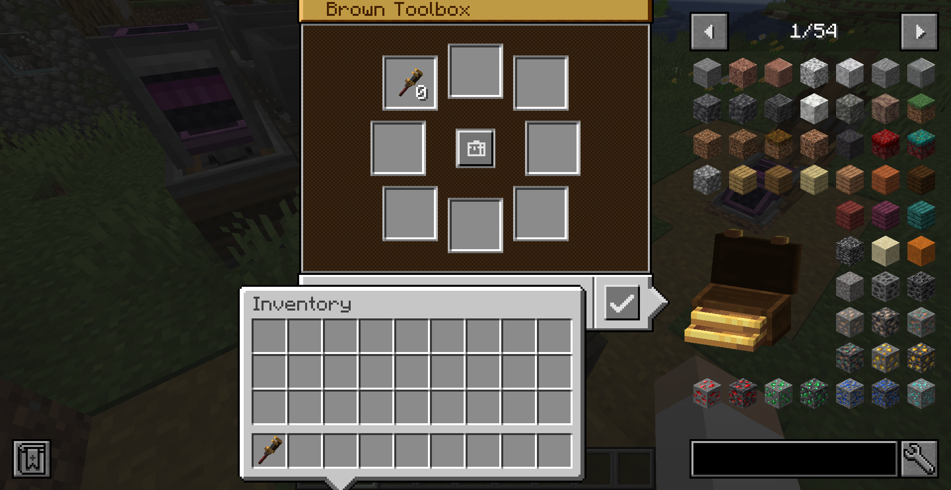 또한 앞으로 서바이벌 모드에서 작업을 한다면 Toolbox를 적극 활용하시면 좋습니다. Toolbox는 설치해 두면 일정 영역 안에서는 Toolbox 내 도구에 바로 접근이 가능합니다. 자세한 조작키는 설정 화면에서 체크하실 수 있습니다.